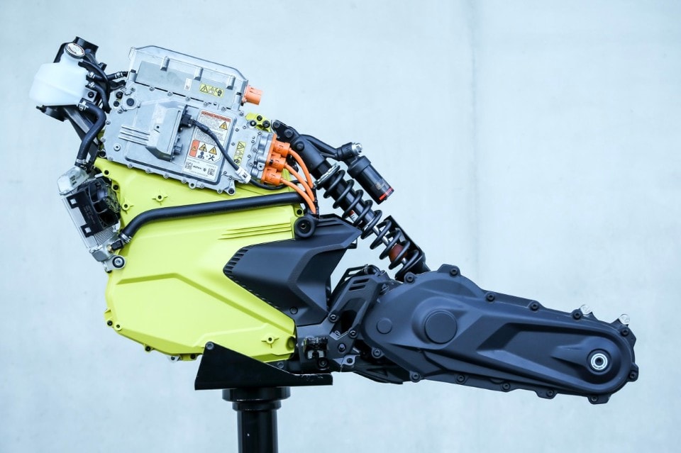 Entrambe le moto presentano forcellone monobraccio con integrata la trasmissione a catena, che rimane nascosta e protetta al fine di allungarne la vita e gli intervalli di manutenzione. Interessanti le caratteristiche del freno motore rigenerativo: rallentando a gas chiuso si recupera energia; nello stesso frangente, in fase di decelerazione, se si ruota il gas in avanti si aumenta il freno motore e si aumenta la ricarica.