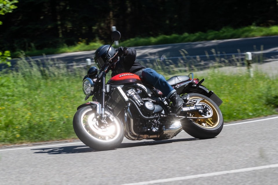 Si parla di un quattro cilindri in linea da 948 cc con 111 cavalli a 8.500 giri e 98 Nm a 6.500, quando la Z 900 di cavalli ne eroga ben 14 in più. Il carattere della Z 900 RS è quindi peculiare, generalmente più morbido e turistico, meno reattivo e sportiveggiante. Ma non si pensi affatto che sia una moto lenta, ci mancherebbe. Della Z 900 RS, il propulsore brilla per fluidità ed elasticità, è sempre pronto all’apertura del gas in qualsiasi marcia e progredisce magnificamente dai 1.500 giri sino al limitatore tanto da potersi quasi dimenticare dell’uso del cambio.