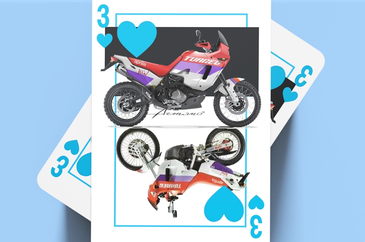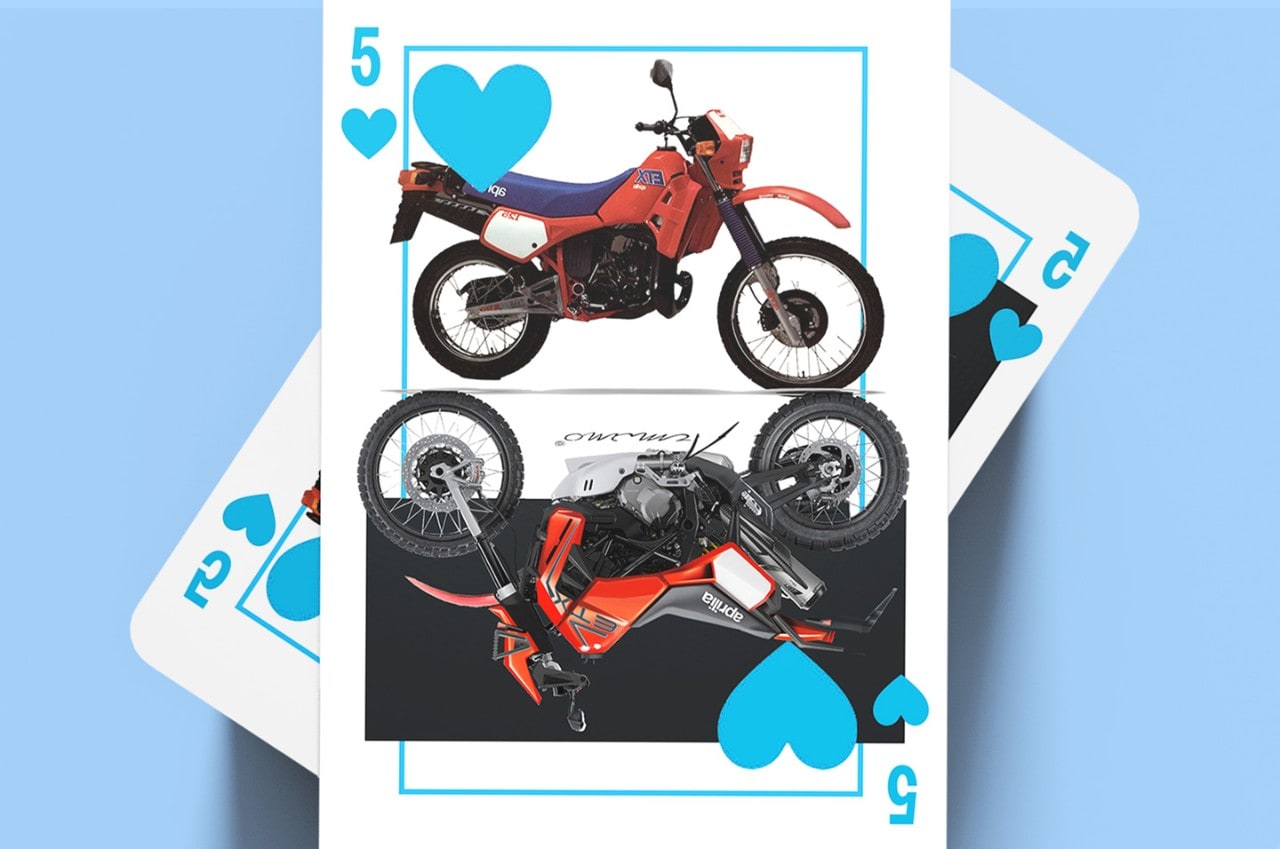 Per la sua erede, Giuseppe riprende le linee dell'originale, con un andamento delle plastiche che pesca anche dalla 450 Rally bicilindrica con cui Aprilia corse la Dakar con Chaleco Lopez. E dato che da anni l’originale V-twin racing sviluppato a Noale non è più in gamma, anche in questo caso la base tecnica su cui è realizzato il bozzetto proviene da Ducati.