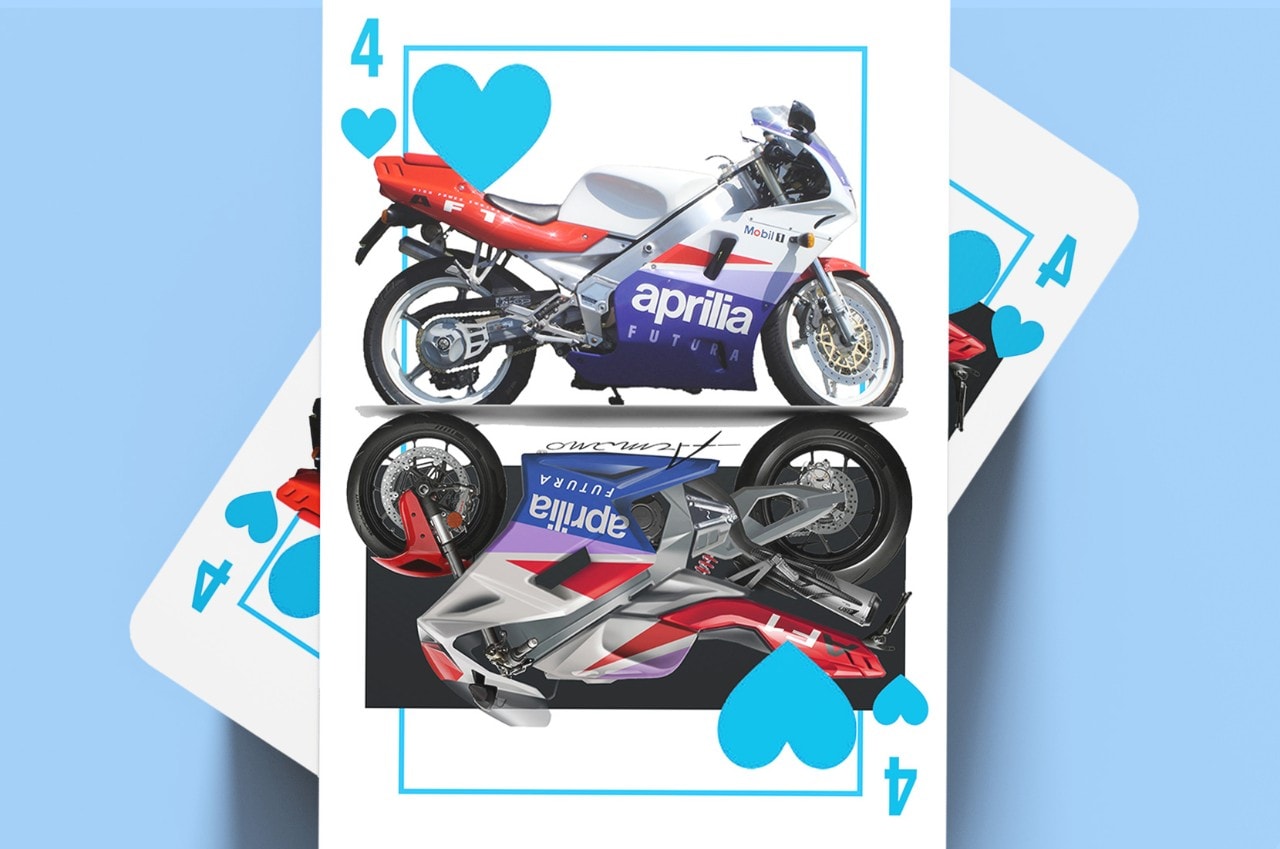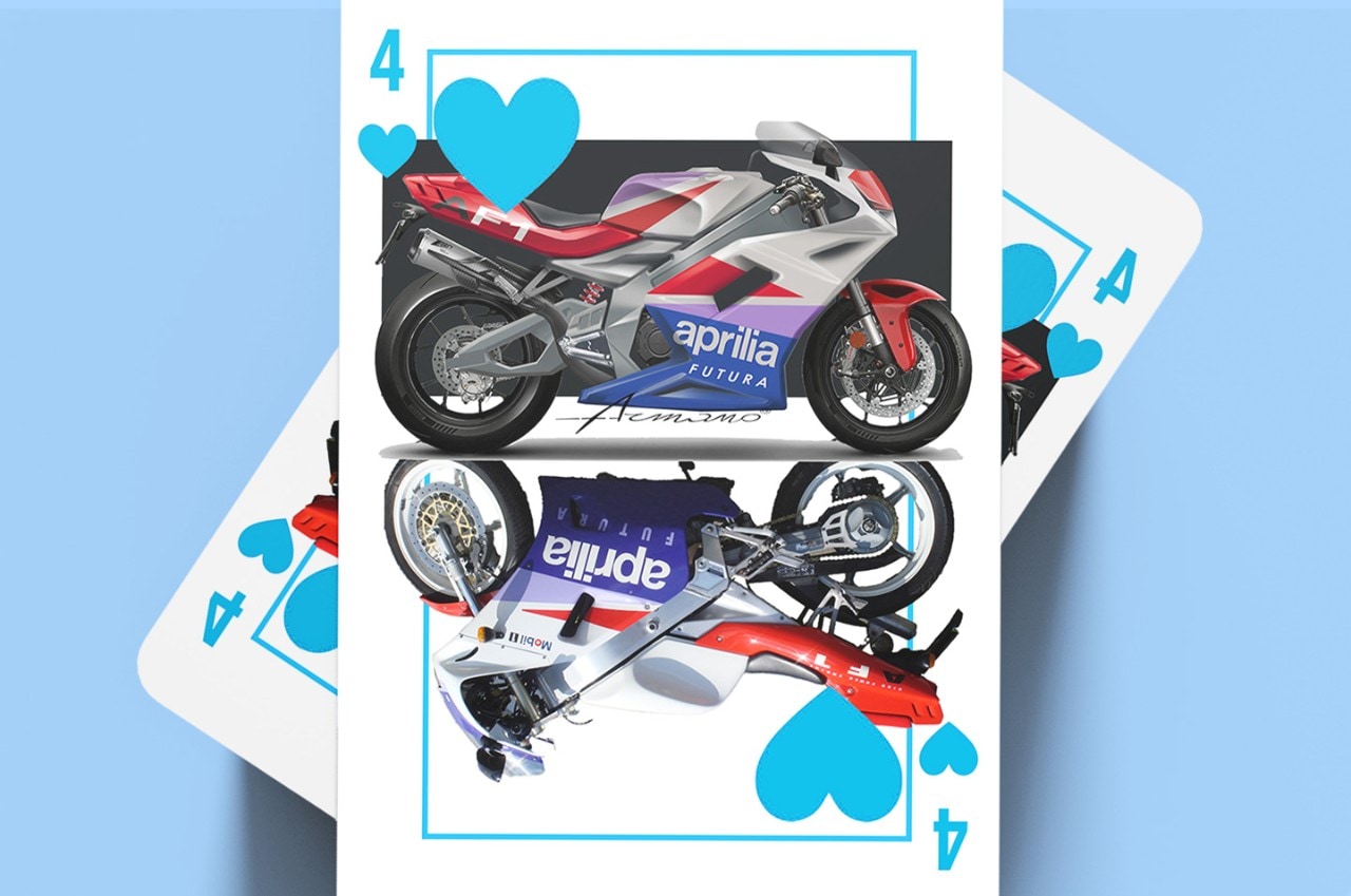 La versione attuale non potrebbe non essere basata sulla recente RS 660, telaio in alluminio e forcellone bibraccio, motore twin parallelo da 100 CV; ma Giuseppe usa sempre la piattaforma della Ducati Panigale V2, con un’architettura se vogliamo ancora più “nobile” su sui si innestano plastiche e grafiche che ricalcano in pieno la AF1 125 del 1989.
