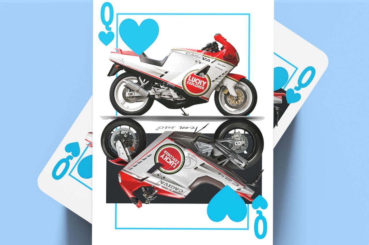 È a questa moto, ambitissima dai ragazzini in particolare nella livrea “Lucky Explorer”, che Giuseppe si ispira per la sua versione moderna, che mantiene la carenatura sigillata perdendo i poco funzionali specchietti “a orecchia” con le frecce integrate.