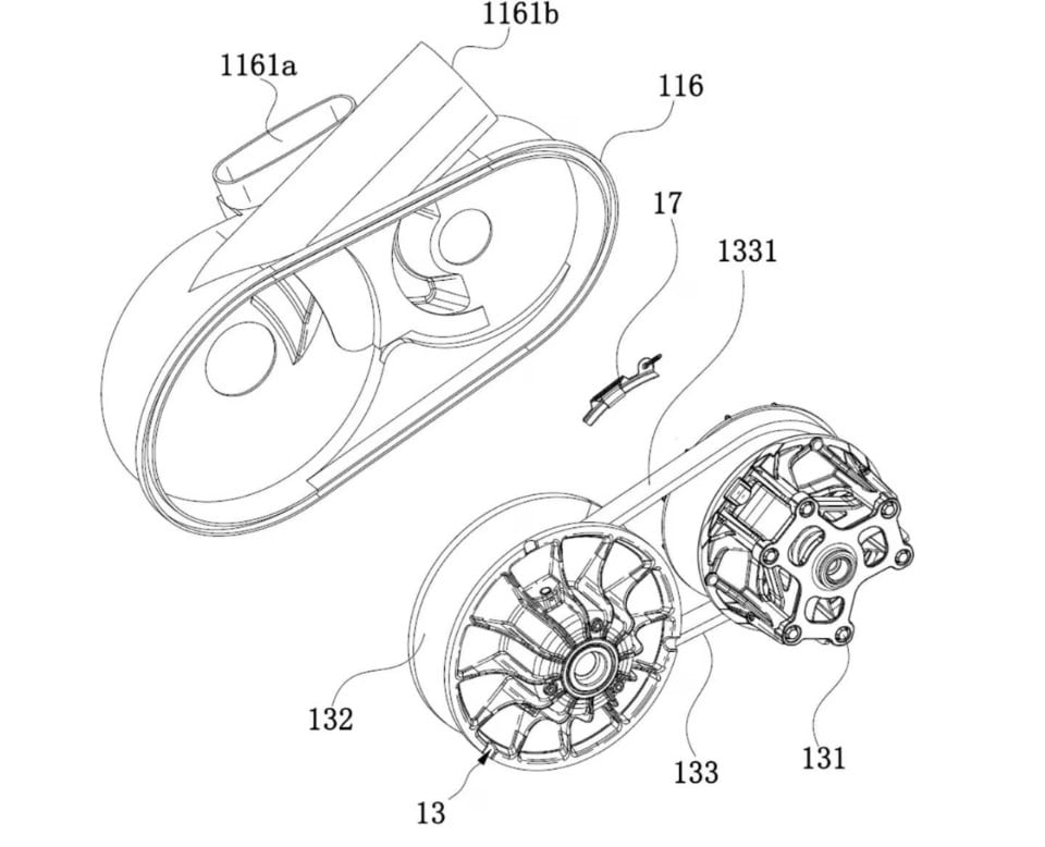 Avremmo dunque una soluzione ben più semplice rispetto a un cambio robotizzato come quelli di Yamaha e BMW, per non parlare del doppia frizione DCT di Honda. Questo spiega perché chi volesse arrivare sul mercato con un cambio automatico in tempi brevi, come probabilmente CFMOTO ambisce a fare, possa pensare di rivolgersi a questa tecnologia. Peraltro CFMOTO arriva dal mondo ATV, dove i CVT sono piuttosto diffusi; e la soluzione che vediamo nel brevetto, con un alberino di uscita a valle della seconda puleggia, sembrerebbe rimandare a questo mondo; tuttavia nel testo si parla esplicitamente di "powertrain motociclistico", anzi particolarmente "integrato" nel veicolo.