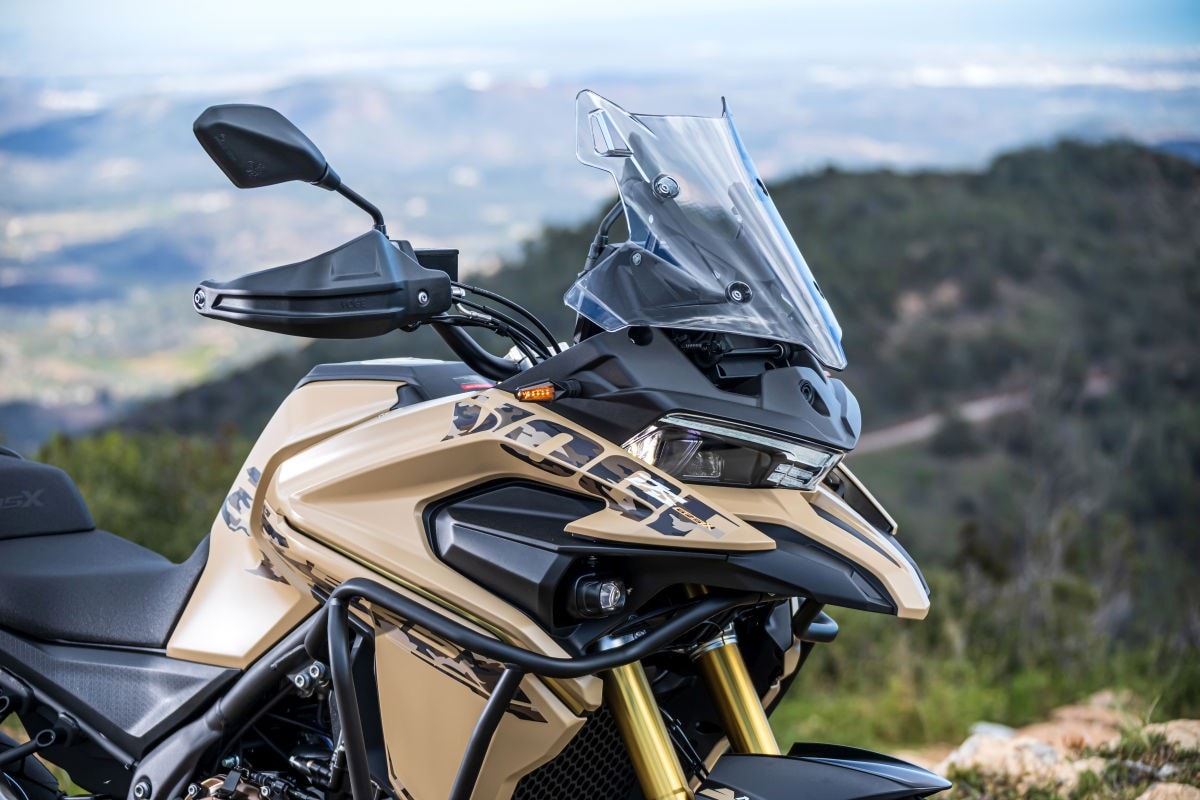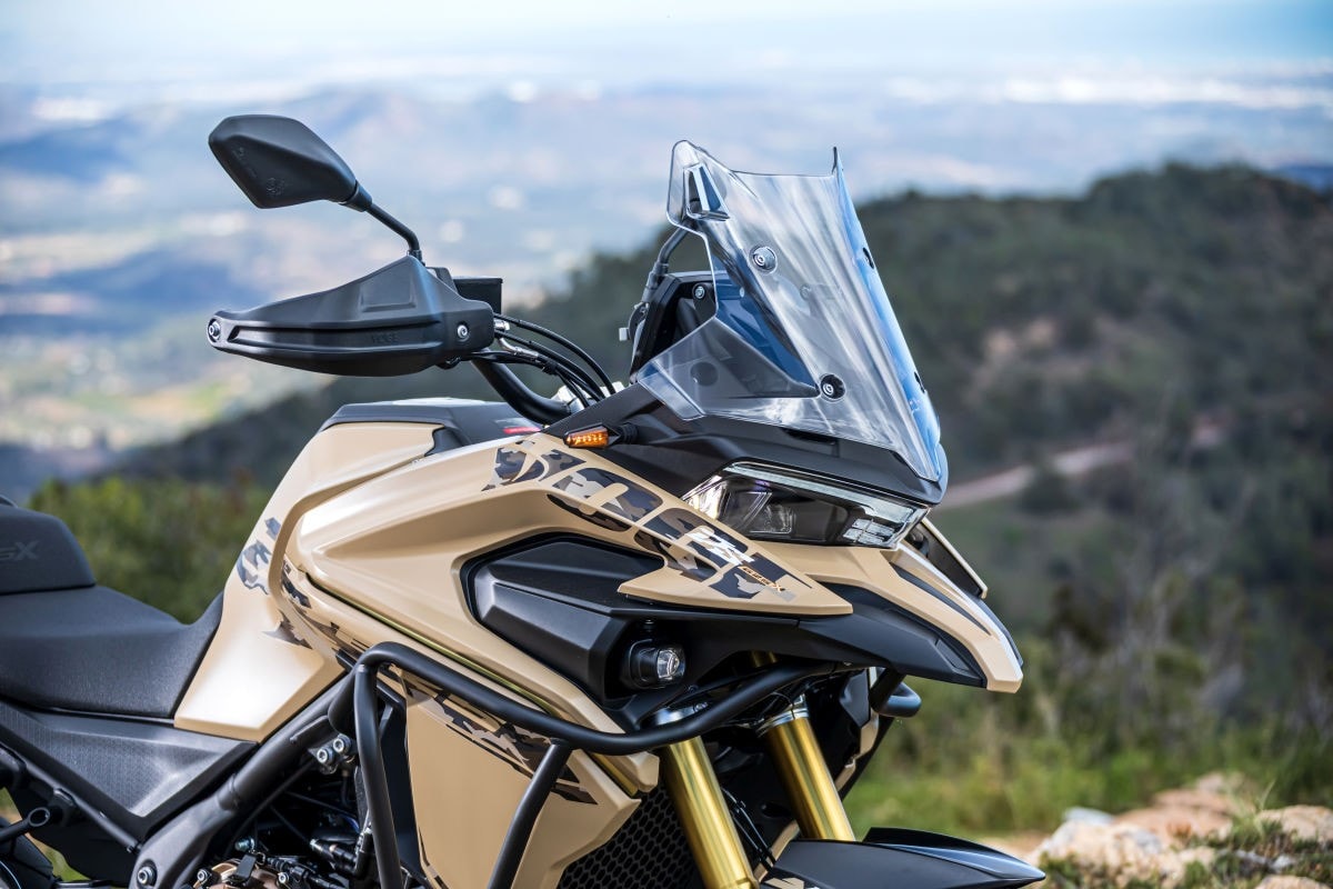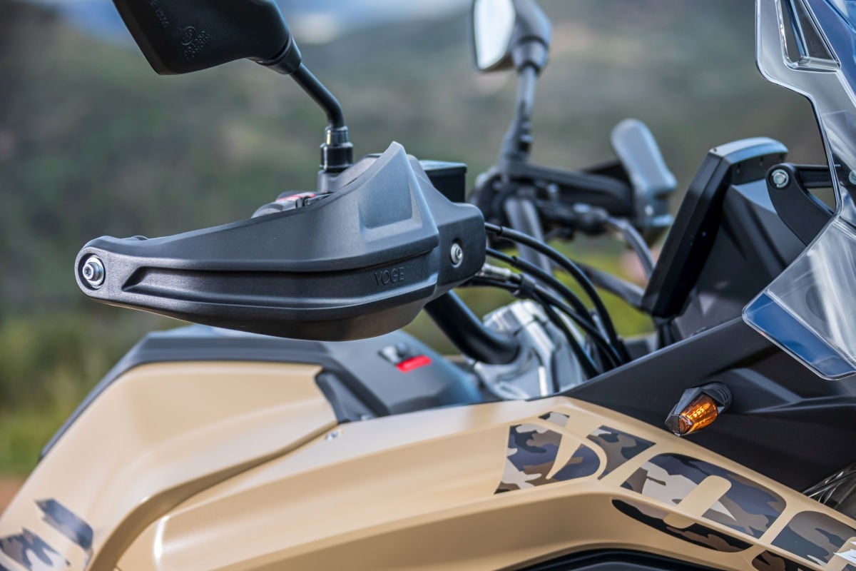 Ricca la dotazione della Valico 625DSX, che punta su fari full LED con luci diurne DRL, cavalletto centrale di serie, leve regolabili, blocchetti retro illuminati, parabrezza regolabile, paramani, barre protettive laterali e sensore pressione gomme. La Valico 625DSX prevede due riding mode pur senza gas elettronico e c’è il controllo di trazione. Lo strumento LCD consente di collegare lo smartphone e supporta la navigazione turn-by-turn.
