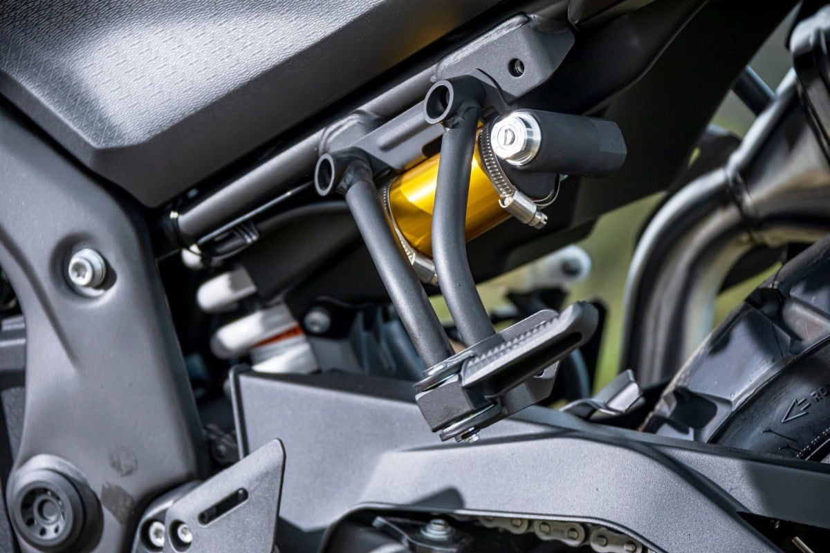 Rispetto alla vecchia 525, pur sostanzialmente invariata a livello estetico, la Valico 625DSX si evolve anche in campo ciclistico. Il telaio in acciaio rimane lo stesso e le sospensioni restano firmate Kayaba, con forcella da 41 e mono su link completamente regolabile, ma cresce di un qualcosa l’escursione delle ruote. Il dato non è reso noto, ma considerato che l’altezza sella sale da 815 a 835 mm (comunque pochi) ipotizziamo si tratti di un aumento di circa 20 mm. Cresce anche la luce a terra, ora di 220 mm.