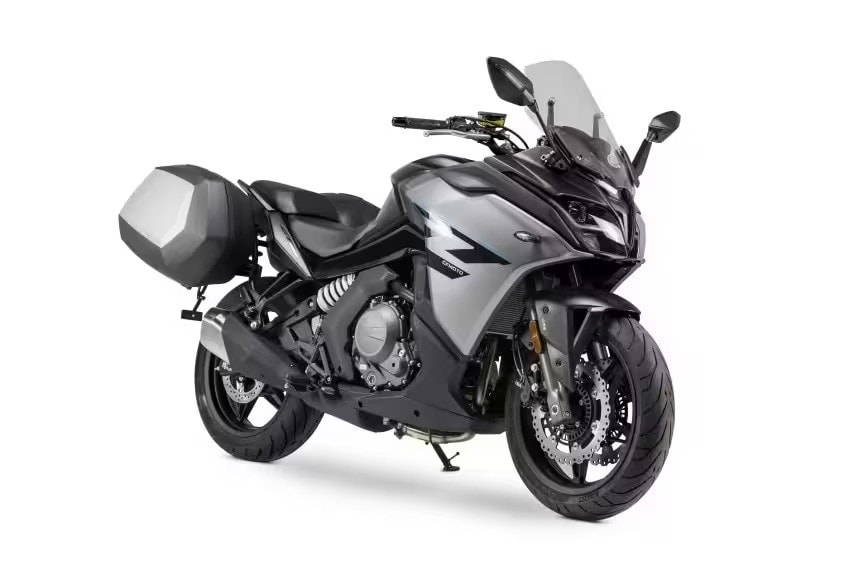 Scendiamo di un gradino nella "scala gerarchica" con la CFMOTO 650GT, proposta della casa di Hangzhou mossa da un bicilindrico parallelo da 649 cc con 56 cavalli e 54 Nm (ma esiste anche in versione A2). Anche lei, seppur con cilindrata e potenza nettamente inferiori ad altre, è una vera sport tourer, una moto al 100% stradale che non vuole prendere spunto in alcun modo dalle maxi enduro. Telaio in acciaio, sospensioni con forcella tradizionale con 130 mm di corsa e mono montato lateralmente regolabile nel precarico e nell’idraulica, freni con dischi anteriori da 300 e pinze ad attacco assiale, ruote in lega da 17”. Il tutto, avvolto da una generosa carenatura su cui svetta un bel parabrezza regolabile. Prestazioni oneste e guida disinvolta per questa GT venduta di serie con le borse laterali rigide in tinta con la carrozzeria a un prezzo super concorrenziale di 6.590 euro, abbinato, come ci ha abituato CFMOTO, a un ottimo livello qualitativo.