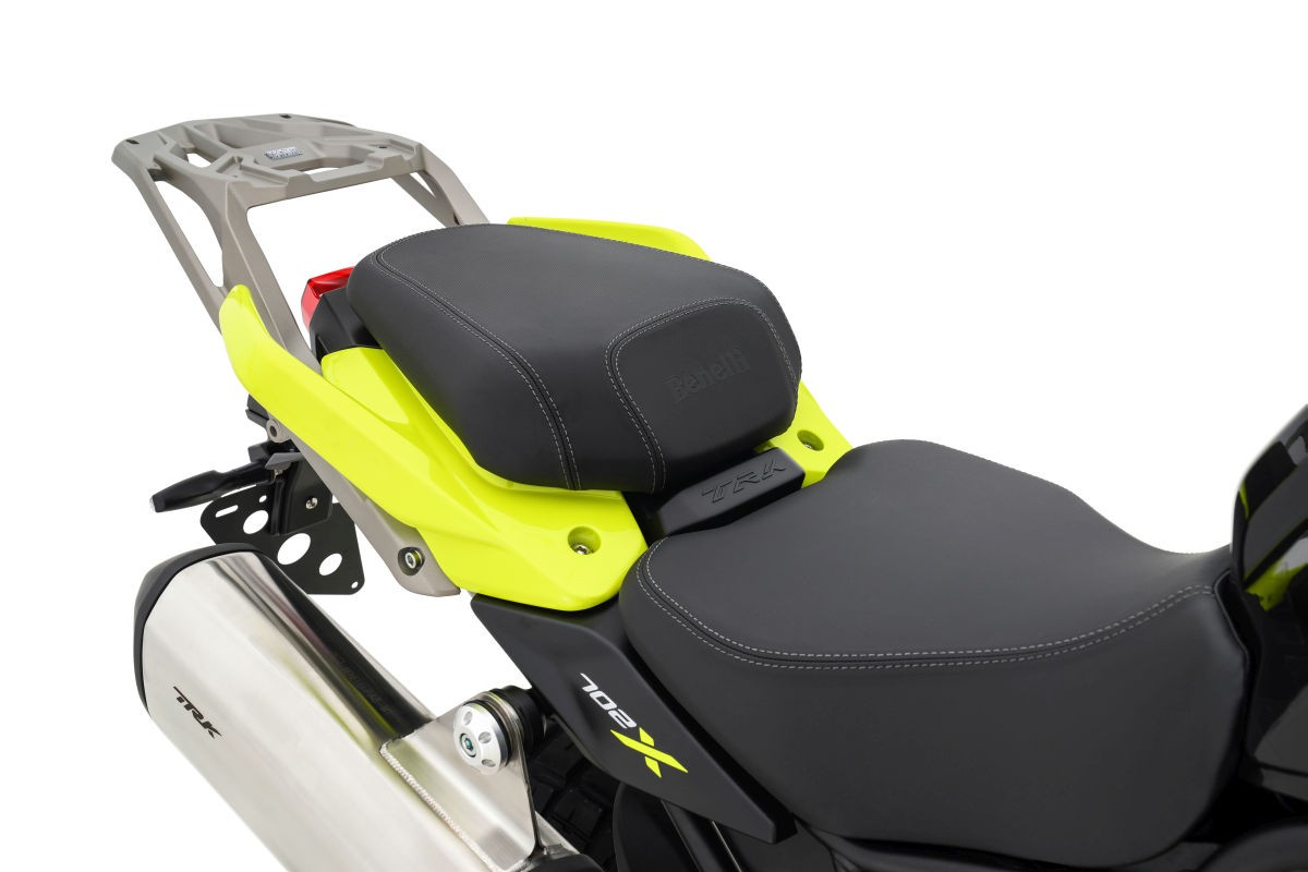 Sulla TRK 702/X Euro5+ debutta anche un nuovo portapacchi posteriore, caratterizzato da una struttura più corta e parallela al suolo: una soluzione che permette di abbassare il baricentro con il bauletto montato e previene eventuali fastidi alla schiena del passeggero. Passando invece alla zona anteriore, fanno ora parte della dotazione di serie anche le protezioni laterali, pensate per salvaguardare la moto in caso di eventuale caduta. Confermato il gruppo ottico full LED, che dona al frontale un look distintivo e immediatamente riconoscibile.