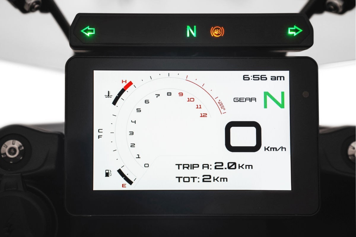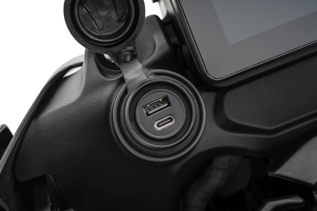 Confermata la dotazione tecnologica, tra cui le prese USB-A e USB-C di serie e il display TFT da 5” con connettività Bluetooth e Wi-Fi, che consente la gestione di chiamate, notifiche e - tramite una app dedicata - la trasformazione del cruscotto in un vero e proprio sistema di navigazione.