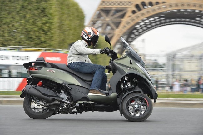 Appena partiti, sull’MP3 ci si dimentica di avere una ruota in più all’anteriore e non serve abituarsi alla guida: con il tre ruote, viene tutto naturale. Nel corso del press test sulle trafficate strade di Parigi, città che vanta la più alta percentuale di tre ruote al mondo, il nuovo MP3 350 si rivela molto equilibrato e agile. Il suo motore da 30,6 CV, grazie alla trasmissione a punto e ben accordata, offre un’erogazione molto fluida; inoltre, essendo più leggero, il 350 è più svelto nel traffico rispetto al più performante MP3 500. Questo, forte del suo monocilindrico da 44,2 CV con acceleratore elettronico “Ride by Wire” multimappa, dalla sua ha il vantaggio di offrire un maggiore allungo su tangenziali e autostrade, ma nei continui chiudi-apri imposti dalla guida in città, ha una trasmissione che si rivela un po’ più brusca nelle ripartenze.