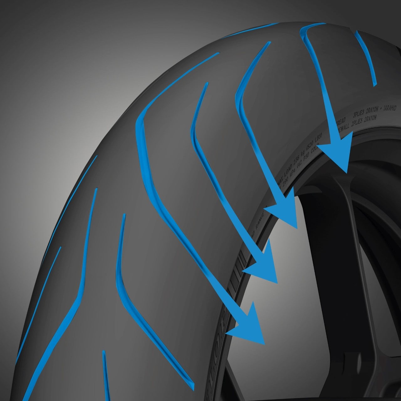 Tecnologia multi mescola, per ottimizzare rendimento chilometrico e prestazioni in piega, alto contenuto di silice, per un elevato grip anche sul bagnato. I Dunlop SportSmart MK3 si sono rivelati un ottimo compromesso per un uso a tutto tondo e ci ha stupito l'anteriore, in grado non solo di regalare un grande feeling anche ad elevate andature e ad angoli di piega accentuati ma, soprattutto, in condizioni di particolare "stress", ad esempio l'entrata in curva con i freni ancora tirati. L'agilità non viene mai meno, così come il grip, sia su strada che in pista.