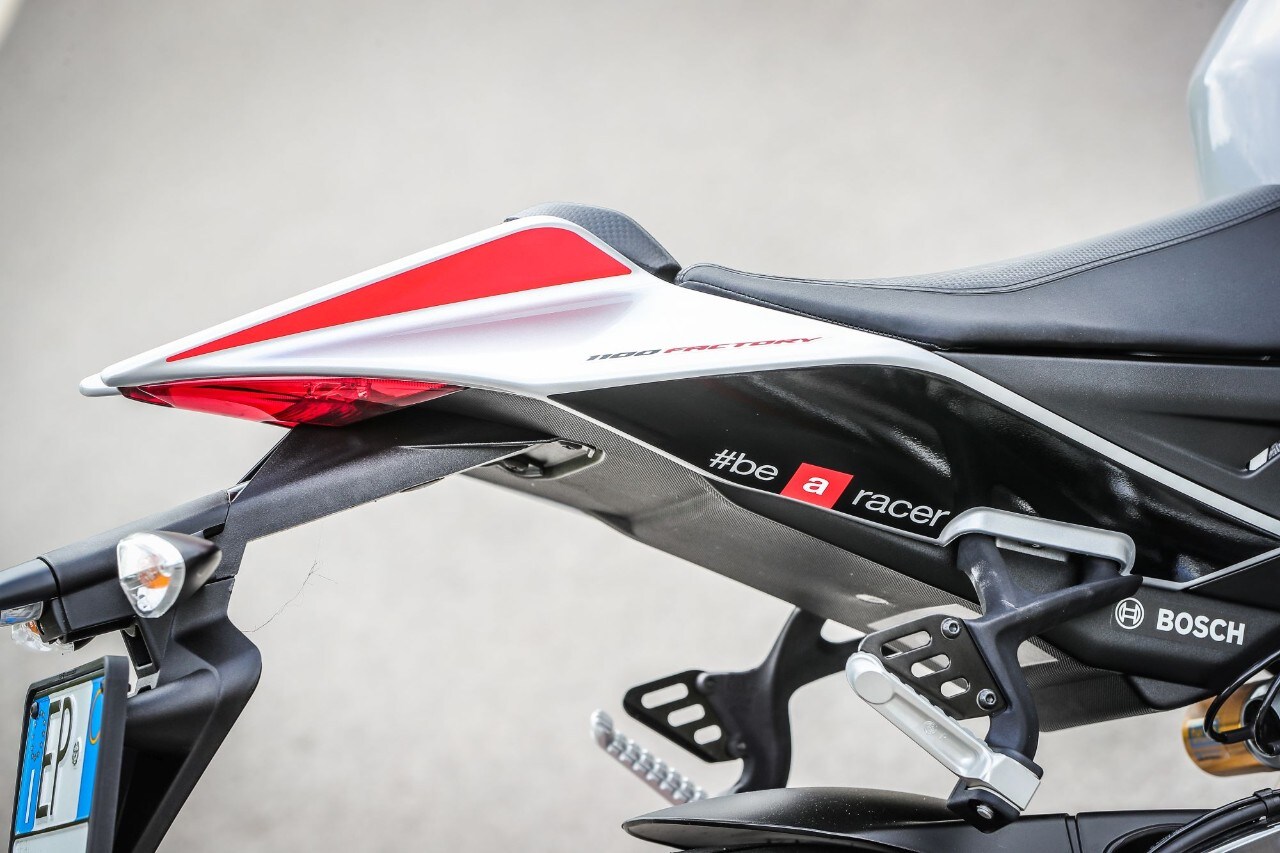 Mi piace. La desidero. No, di più: la voglio! Con l’Aprilia Tuono V4 1100 Factory è così, se ci sali ti trasmette una libidine così forte e immediata che ti vien voglia di comprarla all’istante. Certo, c’è lo scoglio del prezzo non proprio popolare di 19.190 euro chiavi in mano che fa venire le palpitazioni e il tremolio al momento di cliccare “conferma” per il bonifico online (o di porre la firma sull’assegno per i più nostalgici). Si può sempre prendere la Tuono V4 1100 RR (16.290 euro c.i.m), ma basta chiudere gli occhi e lasciarsi trasportare dalla fantasia perché il sogno diventi realtà.