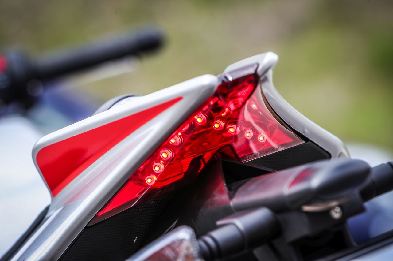 Per ultimi la frenata e la posizione di guida. Per quanto riguarda la prima, che sfrutta un ABS di tipo cornering, l'unico aggettivo che viene da usare è... perfetta: l'attacco non è aggressivo, il comando ha una modulabilità invidiabile e poi, quando serve, c'è tutta la cattiveria per le staccate assassine. Convincente anche la seduta, con il pilota che non è affogato nella moto, il manubrio non troppo alto né troppo lontano e le pedane, giustamente, alte: i 40° d'inclinazione vengono facili, i 45-48° arrivano prendendo le misure e il resto è un di più reso possibile dalla fiducia che si vuole dare al mezzo. Perché il limite, con la Tuono, è vostro, non della moto.