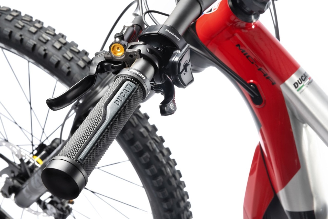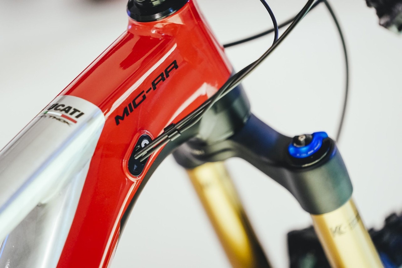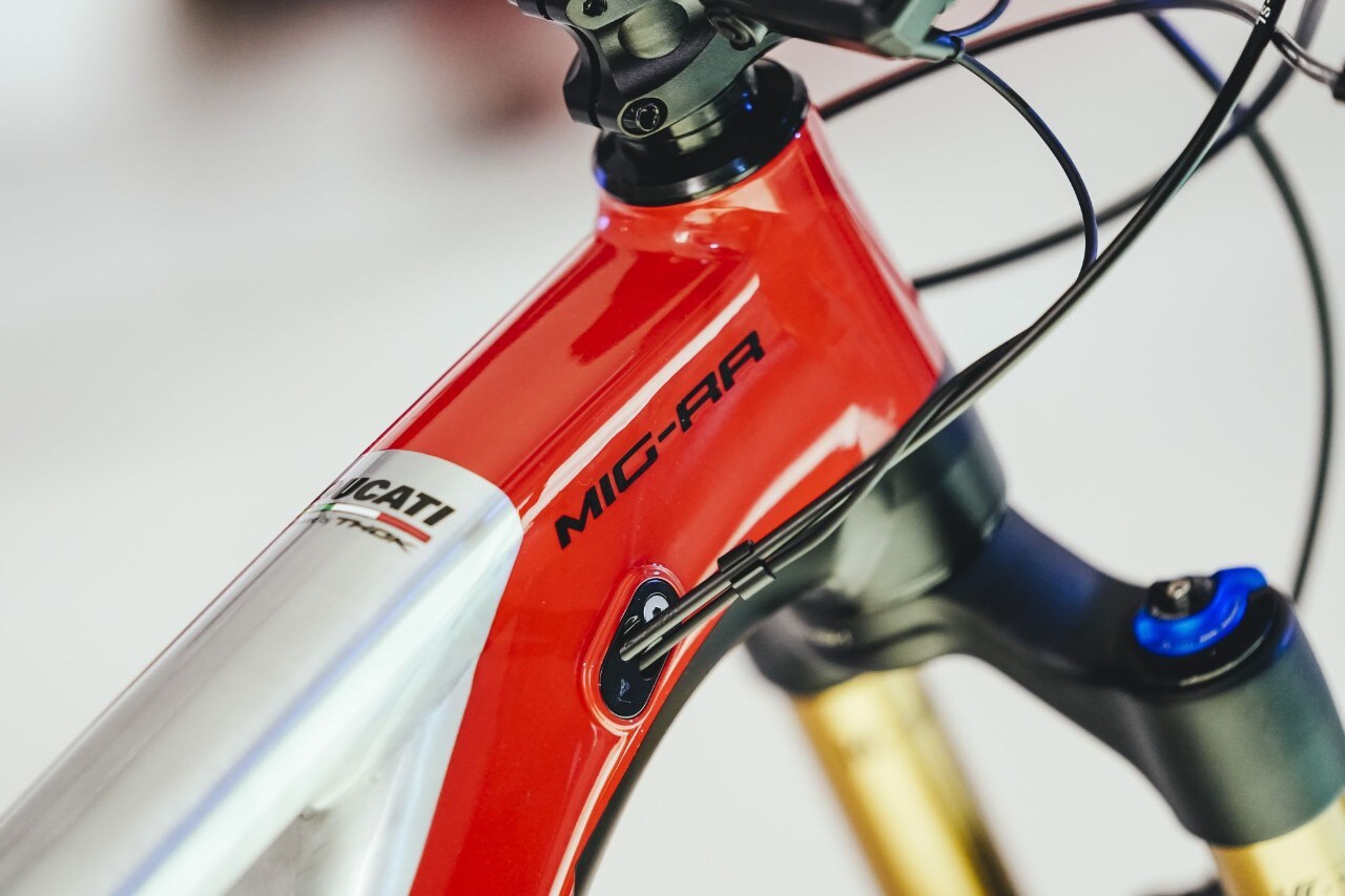 Non è la prima bici a marchio Ducati, ma per capire l’importanza della Mig-RR basta dire che è stata presentata nel museo Ducati. Questa e-MTB non è in realtà un progetto 100% made in Borgo Panigale, essendo basata sulla Thok Mig R; ma ha un design curato da Aldo Drudi in collaborazione con il centro stile Ducati e modifiche per renderla più “enduro oriented”, a partire dall’originale (per il mondo bici) differenza tra le ruote: 29” anteriore e 27,5” posteriore.