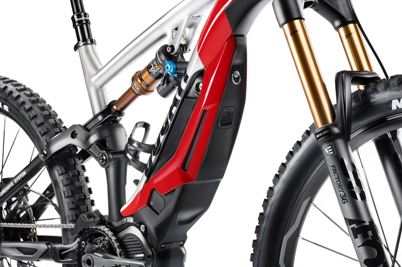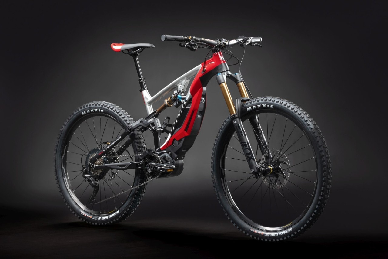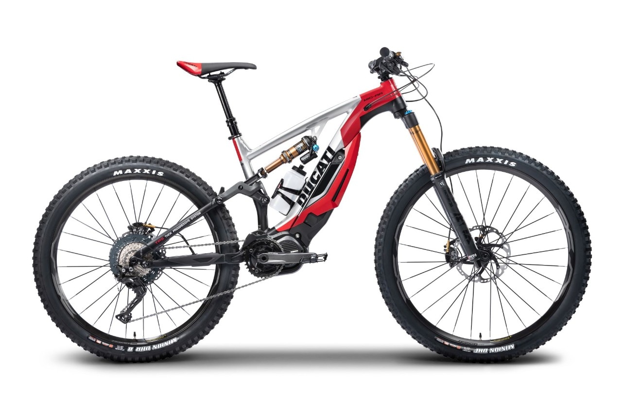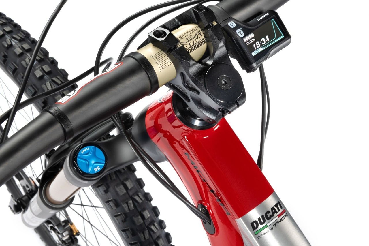 Non è la prima bici a marchio Ducati, ma per capire l’importanza della Mig-RR basta dire che è stata presentata nel museo Ducati. Questa e-MTB non è in realtà un progetto 100% made in Borgo Panigale, essendo basata sulla Thok Mig R; ma ha un design curato da Aldo Drudi in collaborazione con il centro stile Ducati e modifiche per renderla più “enduro oriented”, a partire dall’originale (per il mondo bici) differenza tra le ruote: 29” anteriore e 27,5” posteriore.