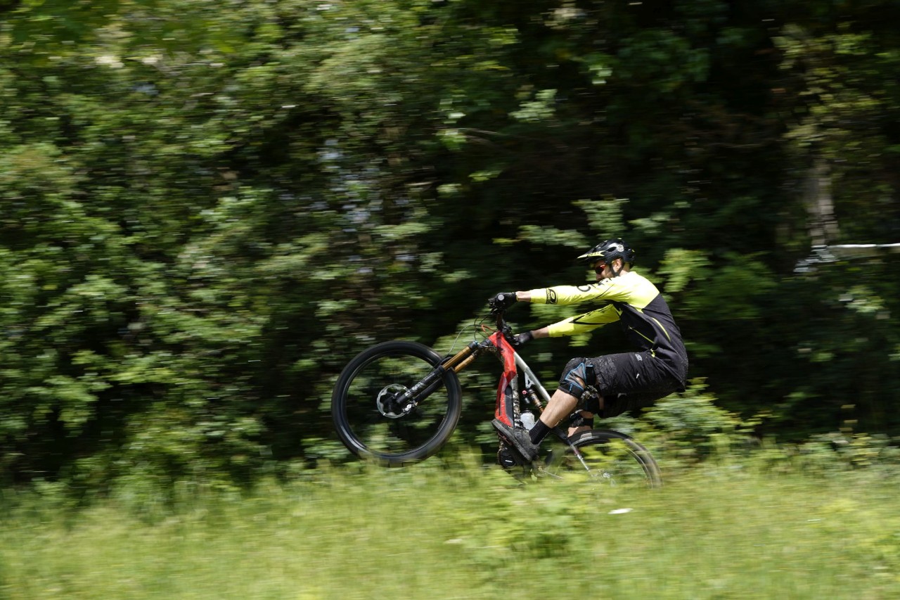 In discesa la Ducati si comporta sempre bene: nei tratti più stretti manca un po’ di reattività, ma dove aumenta la velocità e il fondo si fa più ”scassato“ dà il meglio di sé trasmettendo tanta fiducia, grazie alle ottime sospensioni. Benissimo il cambio, mentre i freni potrebbero essere più modulabili. Nel complesso un’ottima bici, e un degno debutto delle “rosse” nel campo dell’off-road!