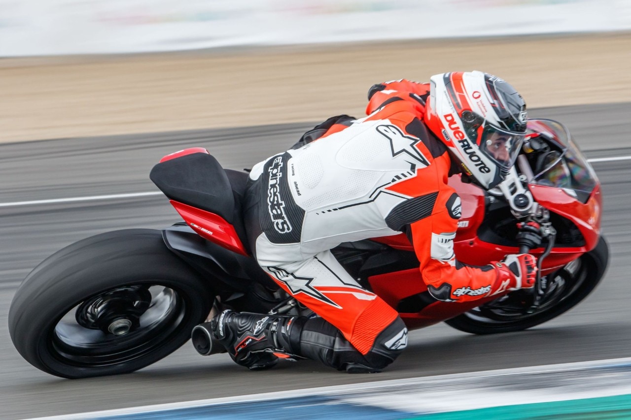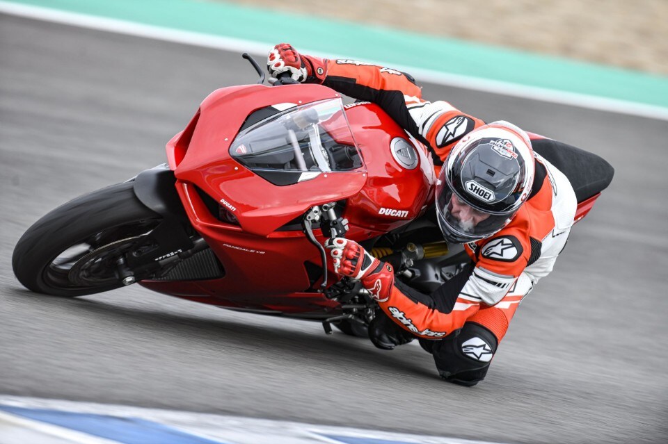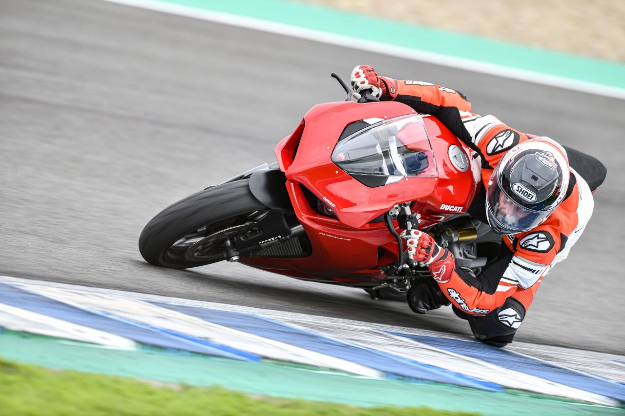 Ha 155 CV, pesa 176 kg e lo stile, unico e inconfondibile, della Panigale V4. La bicilindrica sa dire la sua fra i cordoli (di Jerez), ma si può guidare con piacere anche su strada