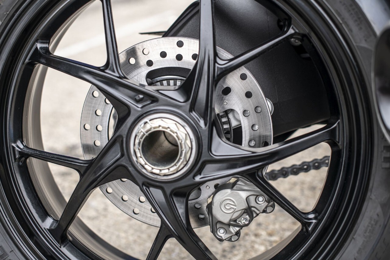155 cavalli per 176 kg. Significano solo una cosa: che in uscita di curva si può spalancare il gas senza terrore e senza sentirsi strappare le braccia. In più, in questo specifico caso, ci sono i controlli. Che sono stati implementati e migliorati e ora c’è anche la piattaforma inerziale che, con la sua mano invisibile, monitora il traction control, l’anti-wheeling e l’ABS, che ora è cornering.