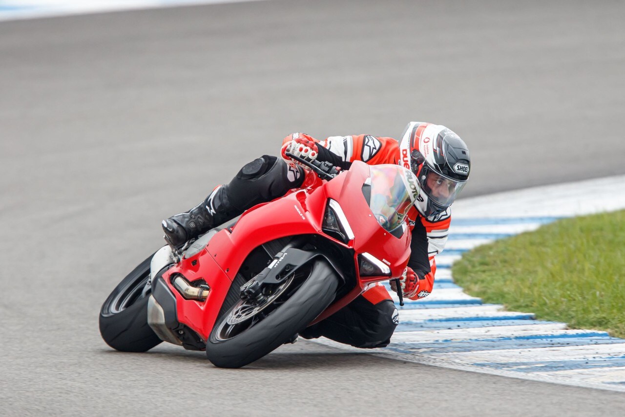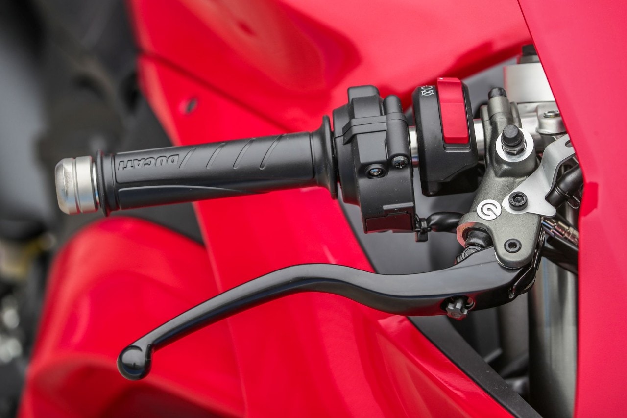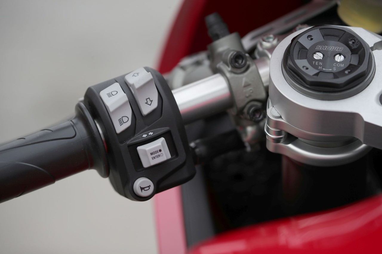 Sulle prime, i 155 cavalli del bicilindrico sembrano un po’ pigri: fino ai 5.000 giri la spinta è molto morbida. Dopo questo regime, ci si invola in un crescendo rossiniano fino al limitatore che bisogna saper prendere e anticipare: all’inizio vi sembrerà un “coitus interruptus”. Sì perché il twin bolognese ha tanto da dire anche oltre i 10.500 giri. E viene zittito in modo un po’ brusco. Pace: si può passare alla marcia successiva in un “tac”, senza schiacciare la frizione e senza perdere troppi giri. Nel mentre, potete godervi la ciclistica: sospensioni non troppo rigide ma molto precise e impianto frenante che non molla, nemmeno dopo molte tornate. La taratura del freno motore (come quella dell’ABS) si può modificare su tre livelli. Con entrambi su step mediani, si guida che è un piacere.