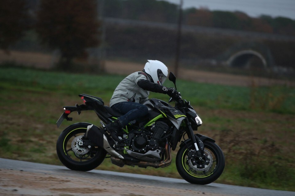 Non abbiamo potuto purtroppo approfondire le reazioni della Z900 nella guida più impegnata a causa dell'incessante diluvio; tuttavia, proprio sulle insidiose strade di una Catalogna allagata la Z900 ci è venuta in aiuto regalandoci un grande feeling durante la guida. Valida la taratura delle sospensioni, che leggono sempre in maniera corretta le asperità dell’asfalto; buona la frenata che non risulta aggressiva al primo attacco, scongiurando repentini interventi del sistema ABS. Il controllo di trazione ci è sembrato permissivo, consentendo spesso alla ruota posteriore di pattinare prima di intervenire: sensazioni che andrebbero approfondite con più tempo a disposizione e condizioni meno limite.