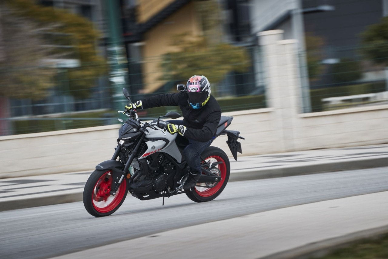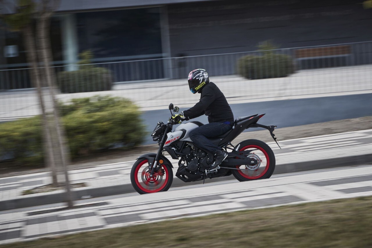 La regolarità ai bassi è esemplare e rende tutto più facile, una regolarità che man mano che si sale la scala del contagiri si trasforma in sportività. Portare il bicilindrico in zona rossa è un piacere, oltre che una bella scuola: la MT-03 permette di sfruttare a fondo le sue prestazioni, senza mettere in imbarazzo il neopatentato, ma allo stesso tempo divertendo chi ha già esperienza.