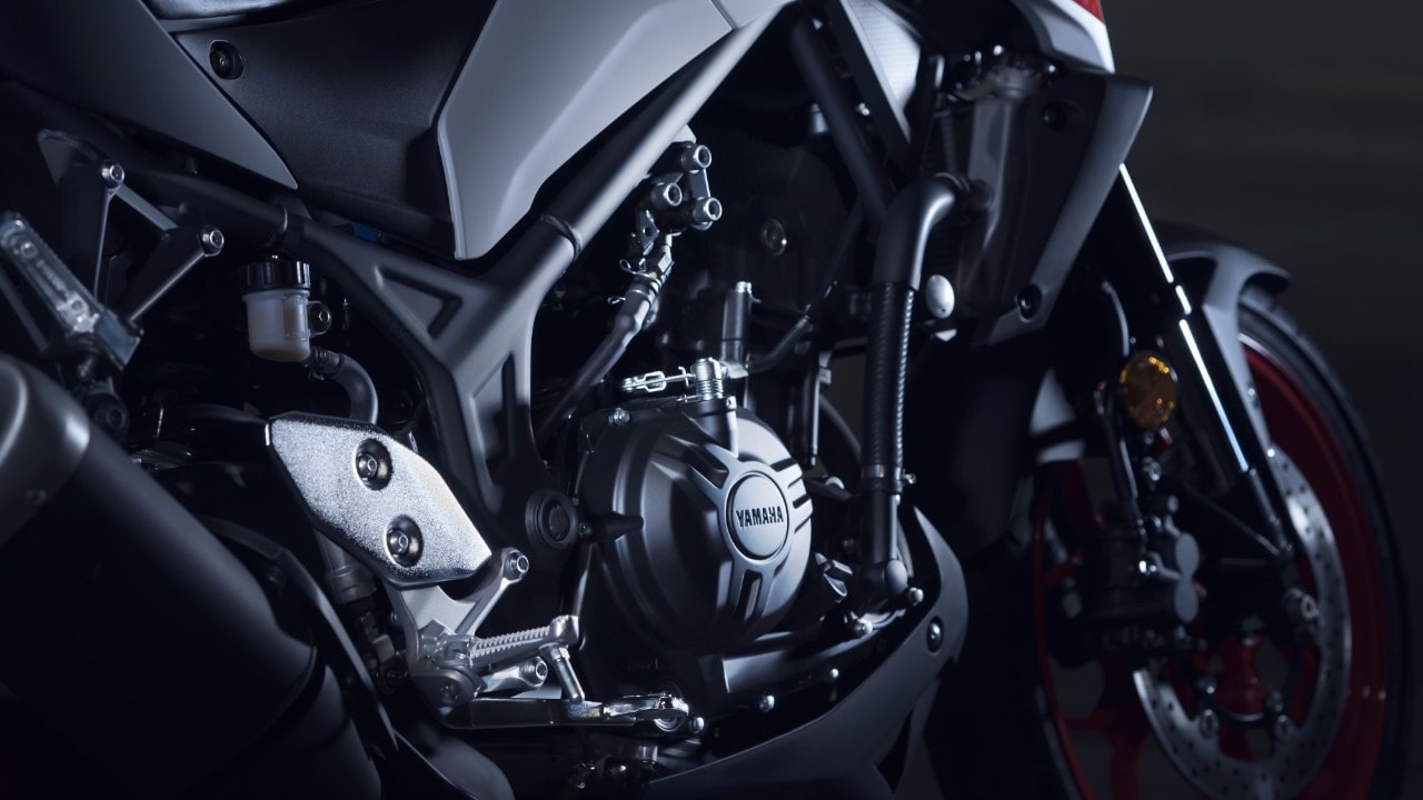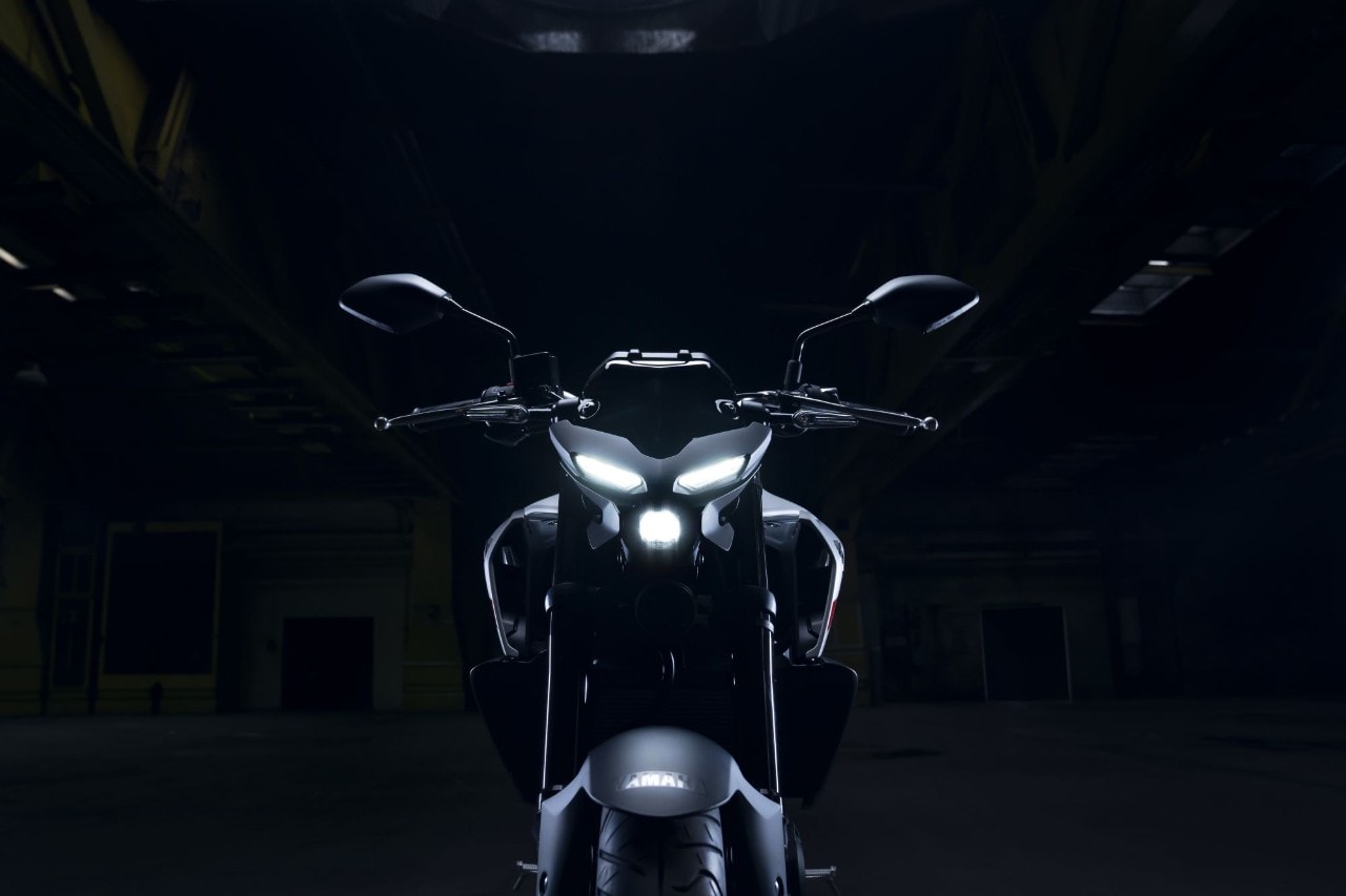 Il nuovo gruppo sembra quasi dotarla di un’anima e di uno sguardo “cattivo”. Tre elementi, due dei quali ricordano due occhi e un altro più basso centrale simile a una bocca: il tutto caratterizzato ed amplificato dalla tecnologia a LED che aggiunge un senso di aggressività e modernità. Ma è anche il serbatoio da 14 litri a dare enfasi al look: si presenta più pronunciato, con delle spalle più ampie e più avvolgenti, cosa che permette di stringerlo bene fra le gambe, dando l’impressione di guidare una moto di maggior cilindrata. I voraci convogliatori, da sempre simbolo delle muscle bike Yamaha fin dalla leggendaria V-Max, fanno il resto.
