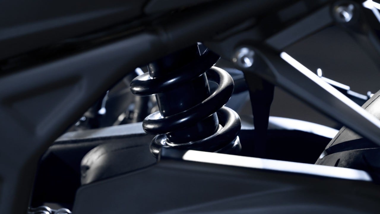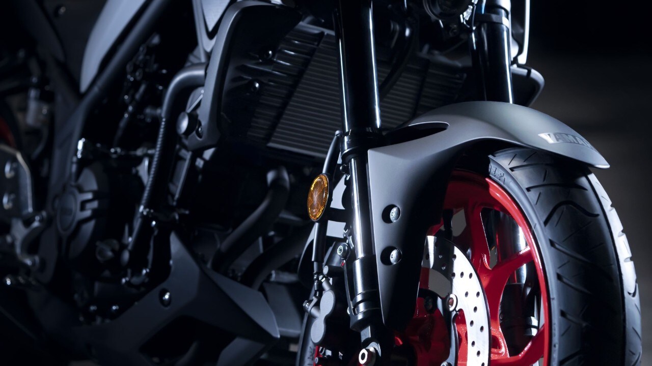 Il telaio in tubi di acciaio che vanno a formare un diamante non cambia, le misure fisiche della moto sono le stesse (l’interasse è di 1.380 mm, la lunghezza di 2.090 mm) e quindi la MT-03 rimane una moto agile (pesa 168 kg con il pieno) e immediata nell’approccio. Sensazione enfatizzata dal manubrio (più alto rispetto al precedente modello) che va a inquadrarsi in un’ergonomia azzeccata: fianchi stretti, posizione in sella arretrata da vera naked e al tempo stesso comoda, con un’altezza della sella di 780 mm.