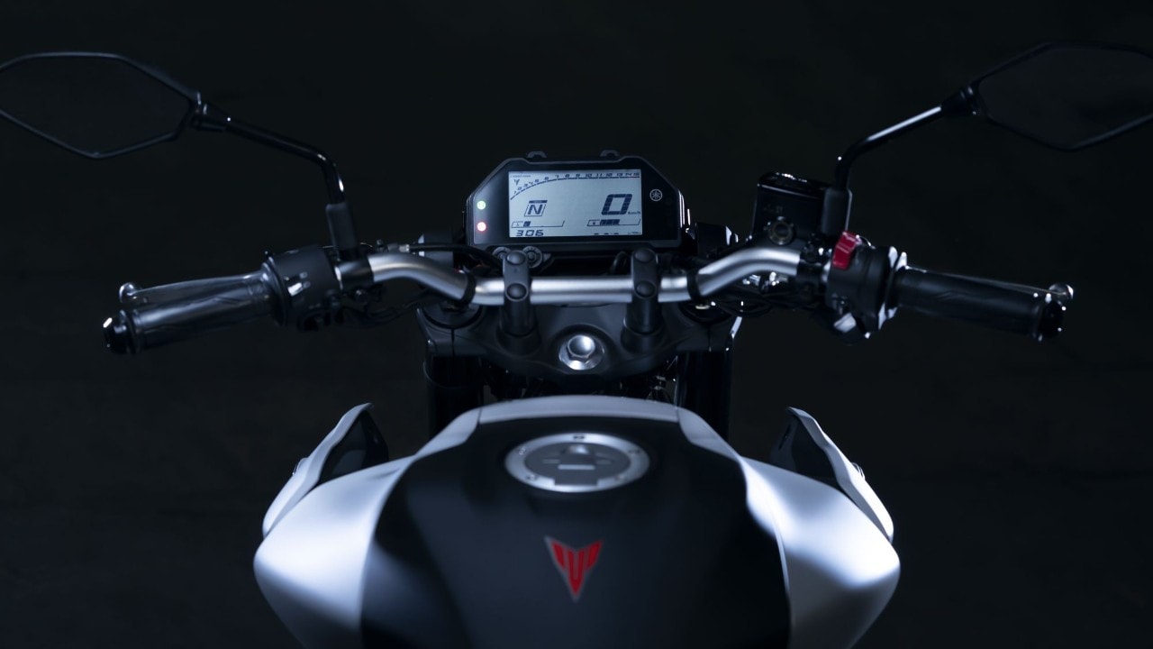 Sono cambiati poi i fianchetti, più alti e più importanti. Infine arriviamo alla coda che presenta linee ben decise ed affilate della sorella sportiva YZF-R3. Da questa viene ripreso il display: grande, ben leggibile e piacevole alla vista. Ricco di funzioni (tra le quali segnaliamo l’indicatore di marcia inserita, l’orologio, l’indicatore del consumo del carburante e la spia del limitatore). Addio al contagiri analogico, ora c’è un elemento a barre, dall’immagine molto racing.