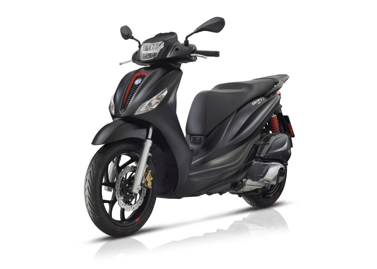 Piaggio Medley S si distingue dalla versione base innanzitutto per le sportive finiture nero opaco, come i cerchi, i paracolpi, il tunnel centrale e il maniglione passeggero. Una sportività sottolineata anche dalle molle degli ammortizzatori verniciate in rosso, tonalità che compare anche sulle cuciture della sella e su altri particolari come la cornice della “cravatta” sullo scudo. Di serie sono presenti anche il disco freno anteriore e posteriore con profilo a margherita e pinze color oro, e il sistema di connettività Piaggio MIA. Medley S propone di serie anche la funzione bike finder attivabile da remoto. Il bike finder attiva il lampeggio degli indicatori di direzione per individuare facilmente il proprio veicolo nei parcheggi più affollati. Tre le varianti cromatiche, abbinate a sella e interni neri: Bianco Luna, Grigio Materia e Nero Meteora, quest’ultimo opaco.