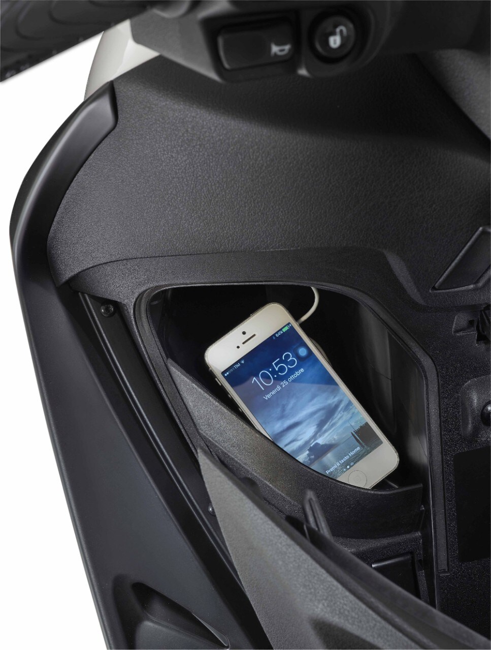 Il sistema Piaggio MIA, per la connessione dello smartphone al veicolo (di serie su versione S), è proposto anche come accessorio al prezzo di 196 Euro