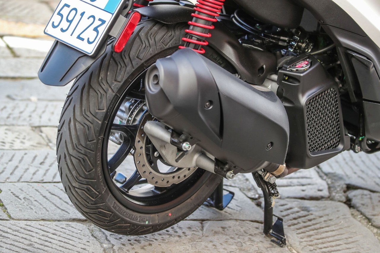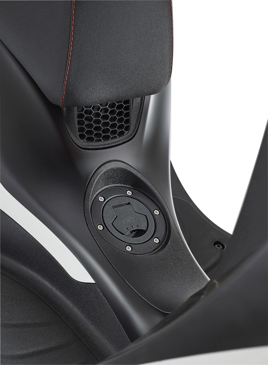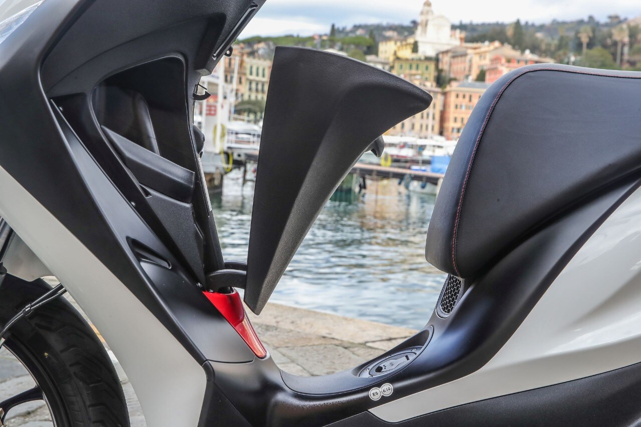 Un ruote alte che ha un sottosella enorme: il vano può contenere due integrali, sulla pedana c'è spazio per sistemare uno zaino, buono lo spazio nel retroscudo. La piastra su cui si può fissare il bauletto è di serie.