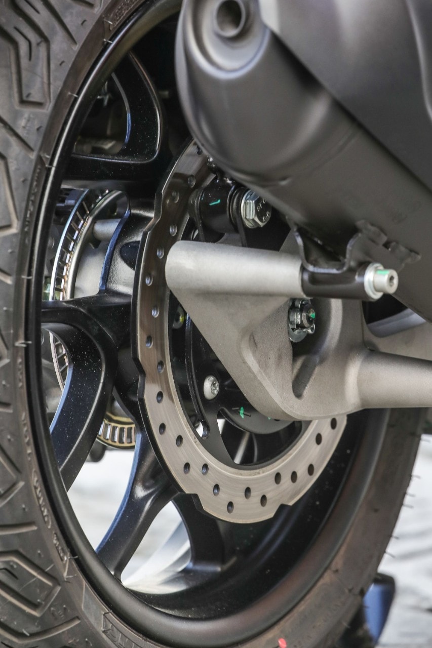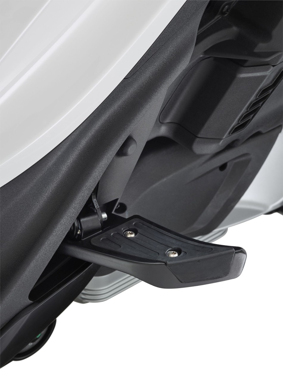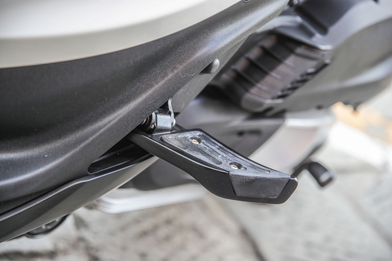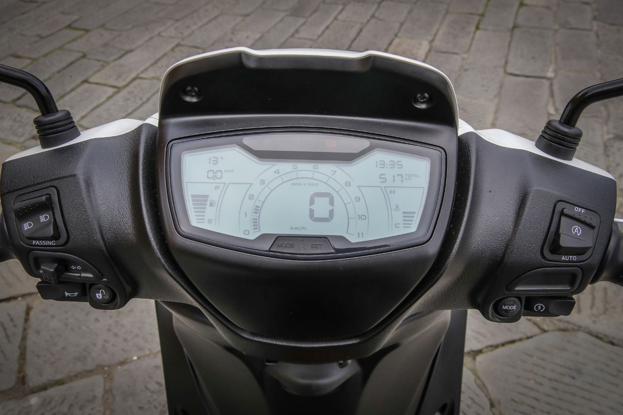 Un ruote alte che ha un sottosella enorme: il vano può contenere due integrali, sulla pedana c'è spazio per sistemare uno zaino, buono lo spazio nel retroscudo. La piastra su cui si può fissare il bauletto è di serie.