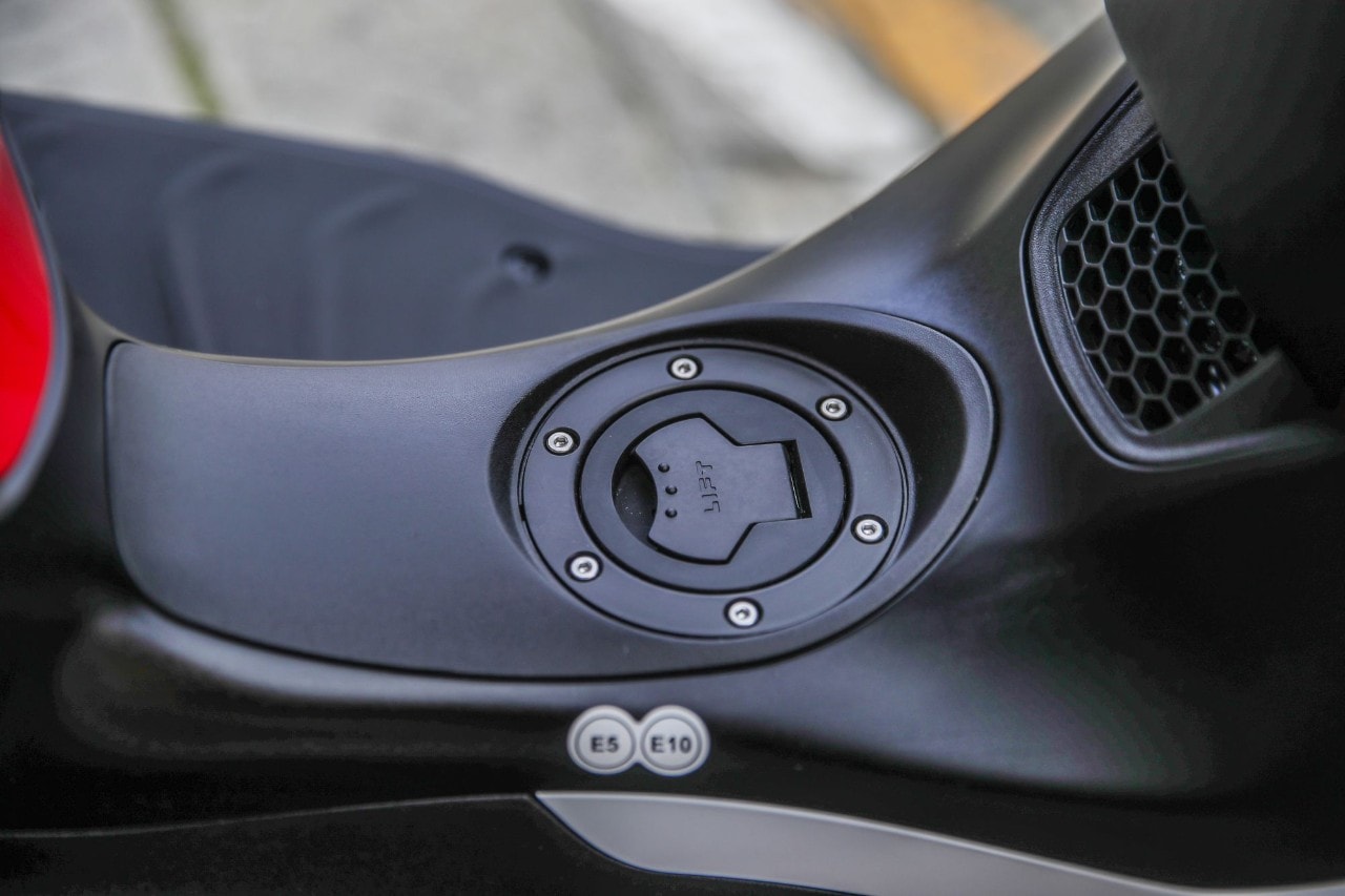 Sintonia immediata. Quella che si prova nei primi metri percorsi sul Piaggio Medley che grazie anche alla nuova sella che ha un rivestimento meno scivoloso consente di stare meglio seduti e di appoggiarsi meglio al piccolo supporto lombare. La posizione di guida ben si adatta ai piloti di tutte le taglie, il manubrio è alla giusta distanza, le ginocchia restano lontane dallo scudo e lo spazio per i piedi sulla pedana è sufficiente. Per muoverli non c'è molto spazio è vero, ma sentirli ben inseriti negli "svasi" aiuta a controllare meglio lo scooter nella guida. La presenza del piccolo tunnel centrale non infastidisce mai e quando è il momento di fare rifornimento aver il tappo del serbatoio al centro della pedana è una comodità, non serve nemmeno scendere dalla dallo scooter.