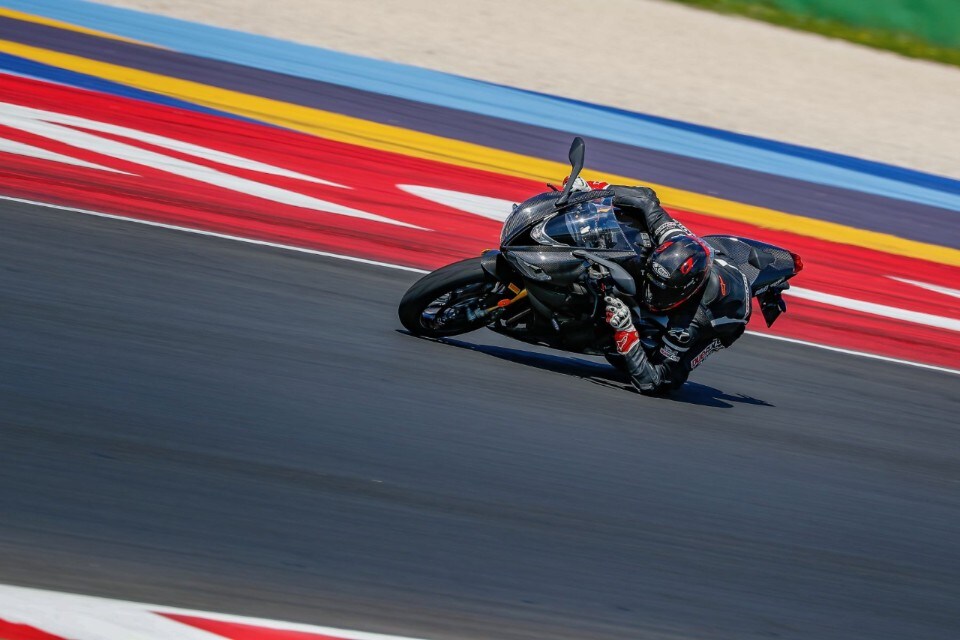 Ah, che goduria guidare tra i cordoli con potenze ancora “umane” dove sì, l’elettronica è presente e vigile; ma ci si sente ancora in grado di guidare senza doversi per forza affidare a lei. Il tracciato di Misano non ha frenate particolarmente impegnative ma l’impianto Brembo funziona in maniera eccellente e l’ABS non fa mai sentire la sua presenza sporcando la ricerca del punto di corda. Su tutto svetta l’assenza di fatica fisica e mentale, che in sella alla Daytona Limited Edition pare non dover mai manifestarsi, nonostante la temperatura dell’aria da piena estate e un tester poco in forma.