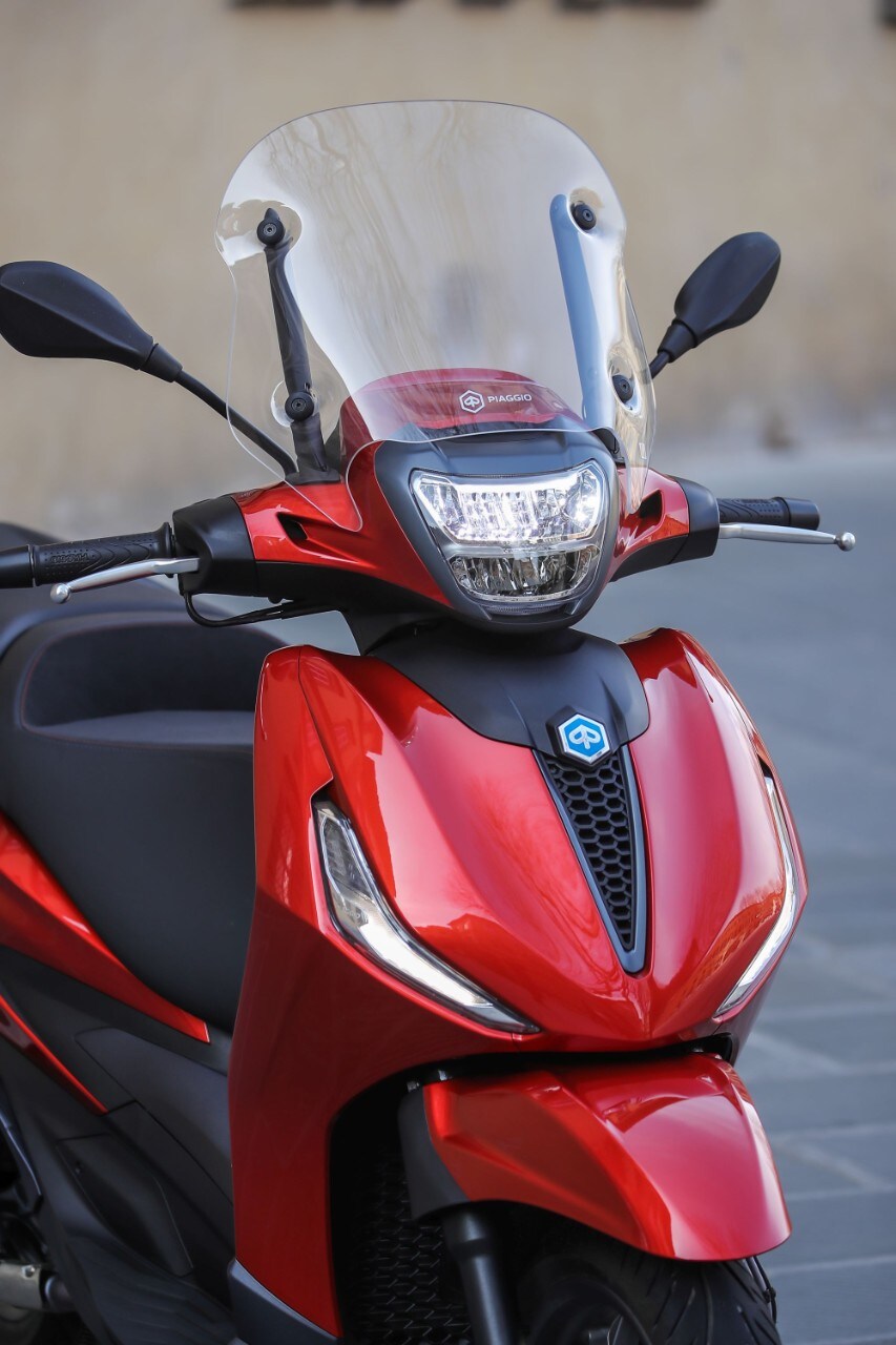 Cupolino: il più ridotto cupolino (di serie su versione 400 hpe) offre un riparo dall’aria sottolineando nel contempo la grinta e il carattere sportivo del nuovo Beverly. Disponibile anche in versione fumè.