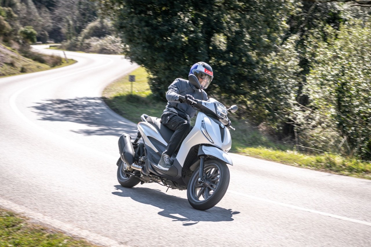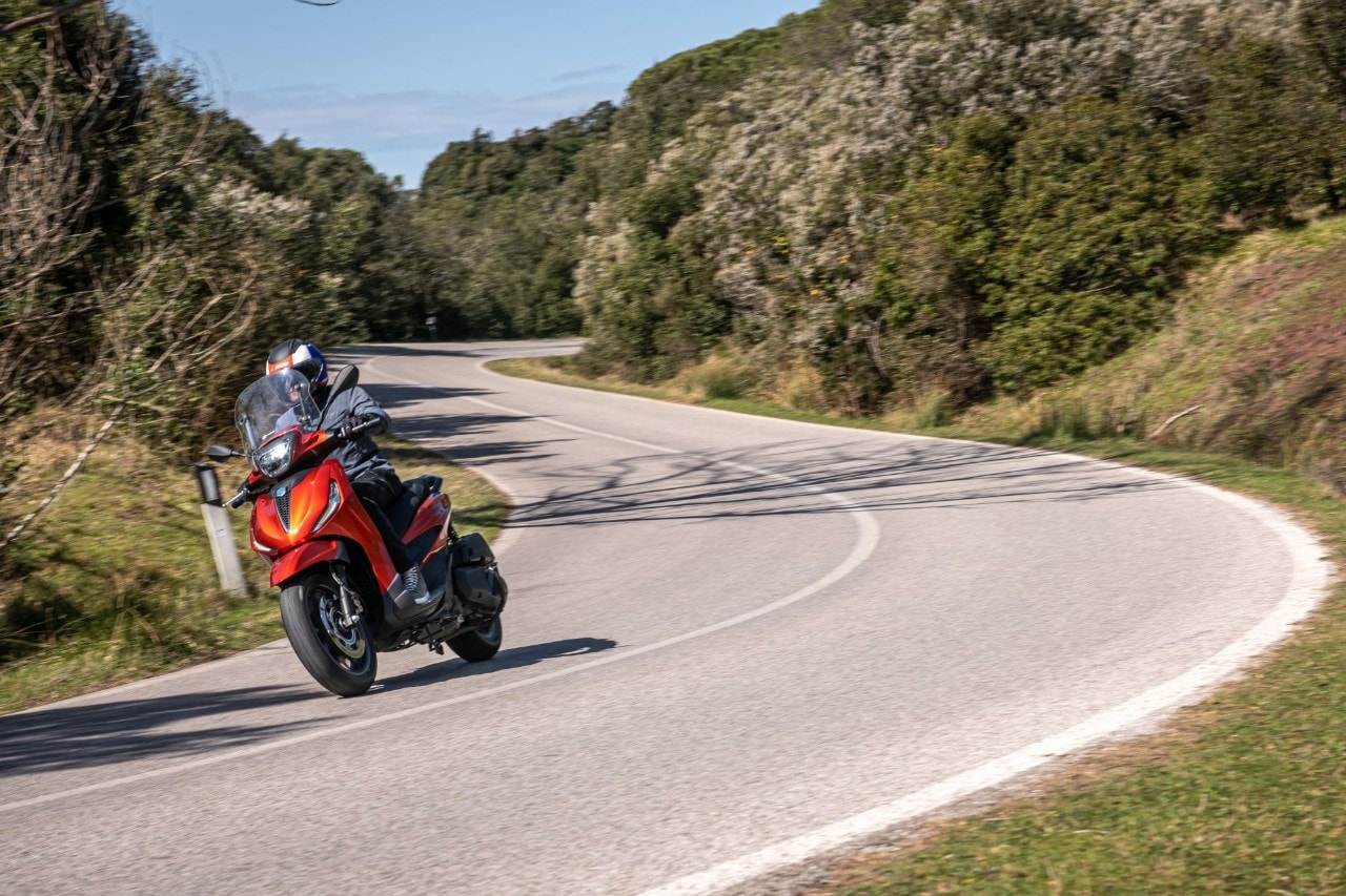 Iniziamo il test con il Beverly 300. Le strade di Livorno nel primo mattino ci attendono. Appena partiti il pensiero è uno solo: in tutti questi anni, di scooter ne abbiamo guidati tanti, pochi però possono vantare un avantreno preciso e comunicativo come quello del Piaggio Beverly. E il nuovo è ancora così: anzi è ancora più comunicativo, grazie alle sospensioni Showa il feeling è aumentato. Gli ingressi in curva sono rapidi e nel traffico il Beverly 300 ha una maneggevolezza degna di uno scooter di minor cilindrata. Svelto e agile, grazie alla trasmissione a punto e scattante e più fluida di quella del precedente 300, il Beverly in città se la cava benissimo e si rivela anche molto comodo. Appena fuori, imboccata una strada tortuosa come quella che sale nell’entroterra toscano dietro Livorno il Piaggio, tira fuori il suo DNA motociclistico. Quello che lo ha sempre caratterizzato e dà il suo meglio. La ciclistica stabile consente di guidare divertendosi un sacco con il minimo impegno. Il motore 300 hpe abbinato alla trasmissione fluida si rivela un buon compromesso, con una spinta briosa a tutti i regimi e vibrazioni impercettibili. Altro punto a favore del Beverly sono i freni, la potenza c'è, ma è sempre facile modulare la decelerazione. L'ABS non può mancare, ma entra solo quando serve, come il controllo di trazione che ora è ancora più intelligente e capace di togliere la potenza solo nei momenti in cui si esagera con l'acceleratore e il fondo non è regolare. Ben bilanciato, molto prevedibile, più protettivo grazie allo scudo più ampio e sempre comodo il 300 ha sì un animo cittadino più marcato, ma è una bella sorpresa anche nell'extra urbano. La proverbiale versatilità è confermata.