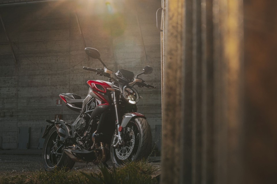 Utile la possibilità di regolare l’ammortizzatore di sterzo per contenere qualche reazione in uscita dalle curva a gas completamente spalancato, mentre il traction control vigila sugli eccessi di confidenza e l’anti-wheelie permette di percorrere decine di metri con la ruota anteriore sollevata di una spanna da terra. Insomma, la Brutale è divertimento allo stato puro, e guidando a ritmo serrato ritroviamo la moto che abbiamo sempre conosciuto. Davvero molto efficace tra le curve, con prestazioni in grado di impensierire moto dalla cubatura maggiore e un vestito che, una volta fermi per riprendere fiato, ci ruba sempre il cuore.