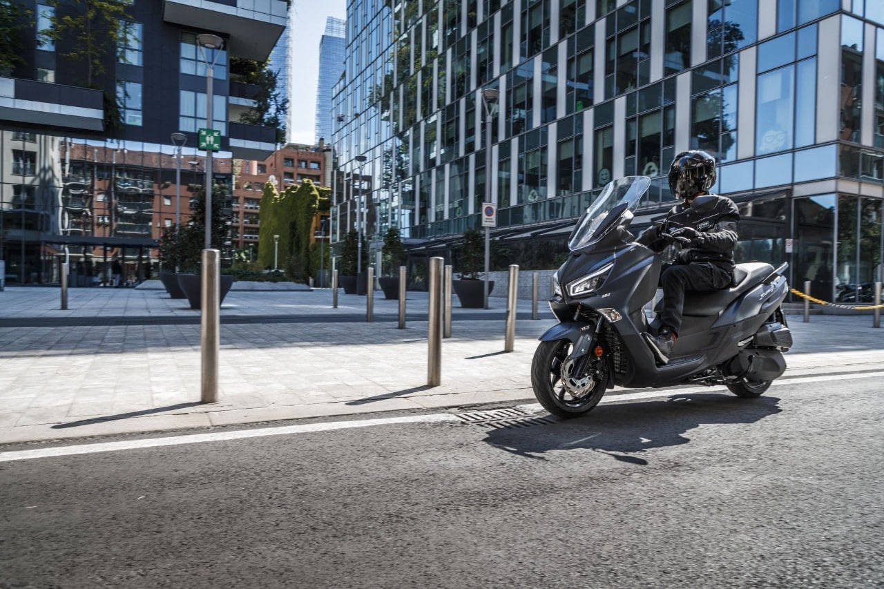 In città il Joymax Z+ 300 se la cava con disinvoltura, lo scudo e il cupolino proteggono bene. L’impianto frenante è una garanzia: è sempre pronto e ben modulabile. A punto e mai invasivo l’ABS. La forcella, ben sostenuta, lavora bene e solo sulle sconnessioni più marcate gli ammortizzatori posteriori faticano un po’. Ma è il tallone d’Achille che accomuna un po’ tutti gli scooter. Sul SYM Joymax Z+ 300 anche il passeggero ha una bella porzione di sella dedicata, non siede troppo in alto rispetto e chi guida, il dislivello è contenuto e ha comode maniglie a cui tenersi. Grazie al sistema “easy touch” le pedane estraibili escono con una semplice pressione.