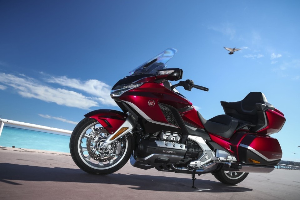 Negli anni la Gold Wing si è evoluta, guadagnando centimetri cubi e cilindri, fino ad arrivare all'attuale generazione, che ha debuttato nel 2018, con motore sei cilindri, 1.833 cc, telaio a doppia trave in alluminio, sospensione anteriore a doppio braccio oscillante e posteriore con monobraccio Pro-Arm e una dotazione hi-tech che completa un equipaggiamento pensato per mettere a proprio agio chi guida e coccolare il passeggero. Perché poche moto riescono a offrire una capacità di carico e un comfort di questo livello sulle lunghe percorrenze. È sufficiente avvicinarsi per sentire crescere dentro il desiderio di partire, scoprendo con grande sorpresa che il terreno ideale della Gold Wing (in particolare nella nuova versione Tour) non sono solo le autostrade, smentendo quello che gli ingombri e i quasi 400 kg in ordine di marcia lascerebbero intuire.