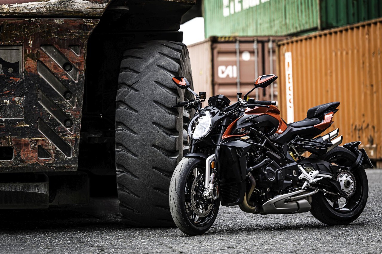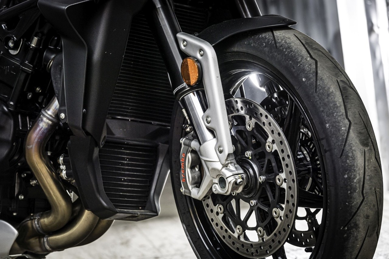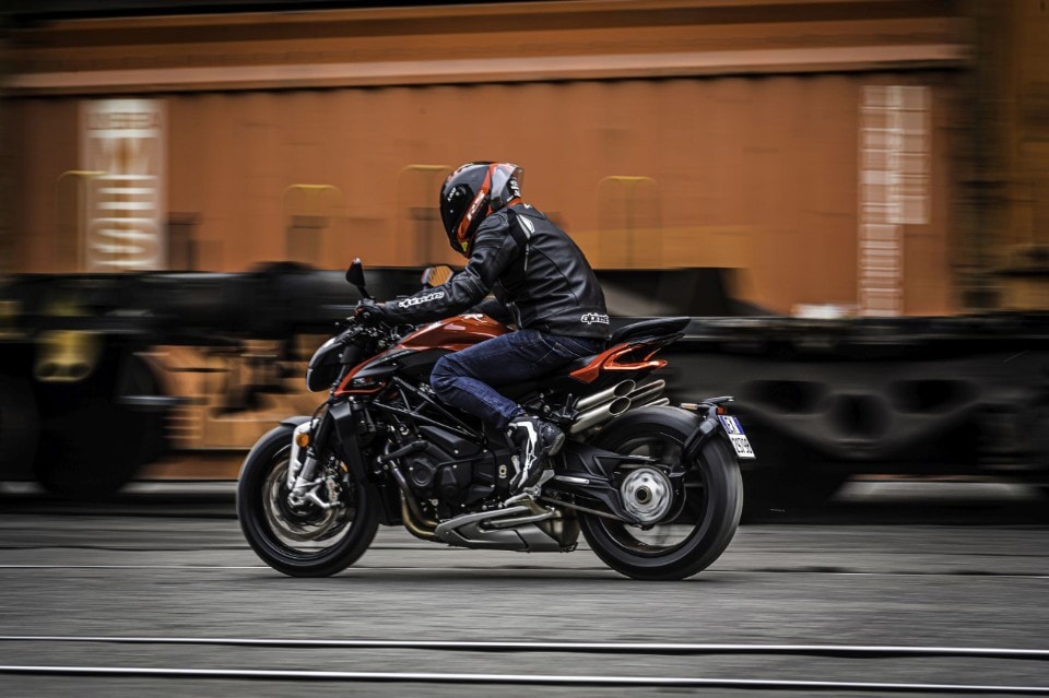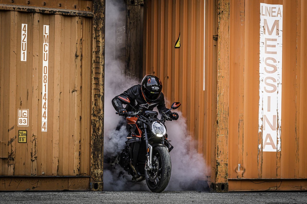 L’adrenalina però scorre a fiumi quando la Brutale inizia a portarci a spasso al ritmo a lei più consono. Appena l’orizzonte si allontana un po’, la RS cala la maschera e sfodera una resa dinamica da standing ovation. Bisogna necessariamente superare i 4.000 giri perché il quattro cilindri italiano inizi a mostrare di che pasta è fatto con i suoi 208 CV dichiarati a 13.000 giri e 116,5 Nm a 11.000: valori degni di un 1.100.