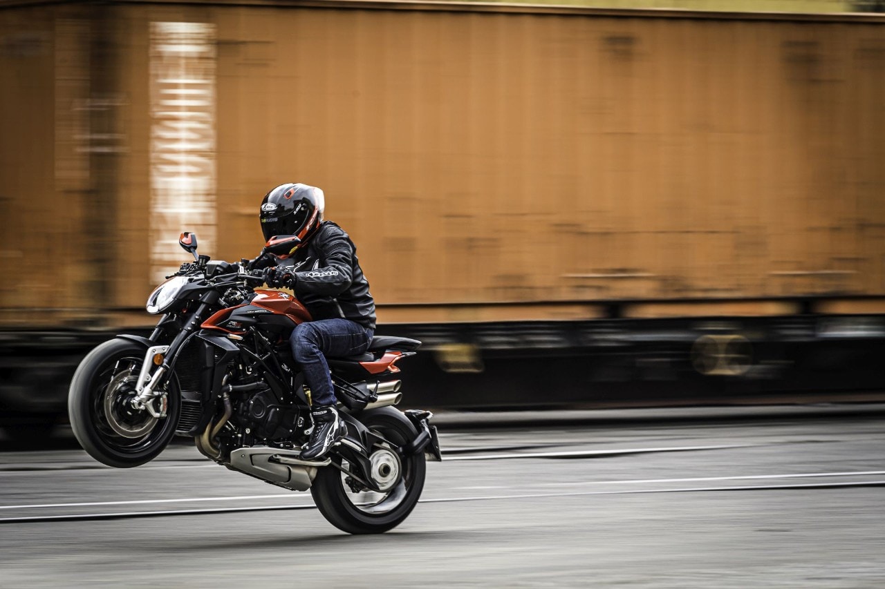 Di certo il modo che la Brutale 1000 ha di concedere i suoi 208 CV al pilota è sicuramente peculiare e in linea con il suo nome. Una volta prese le misure, comunque, guidare la RS può diventare un'ossessione: perché fa godere, punto. Su strade ampie dove c’è la possibilità di sparare un rapporto dietro l’altro – e in queste condizioni il quickshifter diventa uno strumento chirurgico – il latrato del quattro italiano regala scariche di adrenalina alle quali si fa fatica a rinunciare.