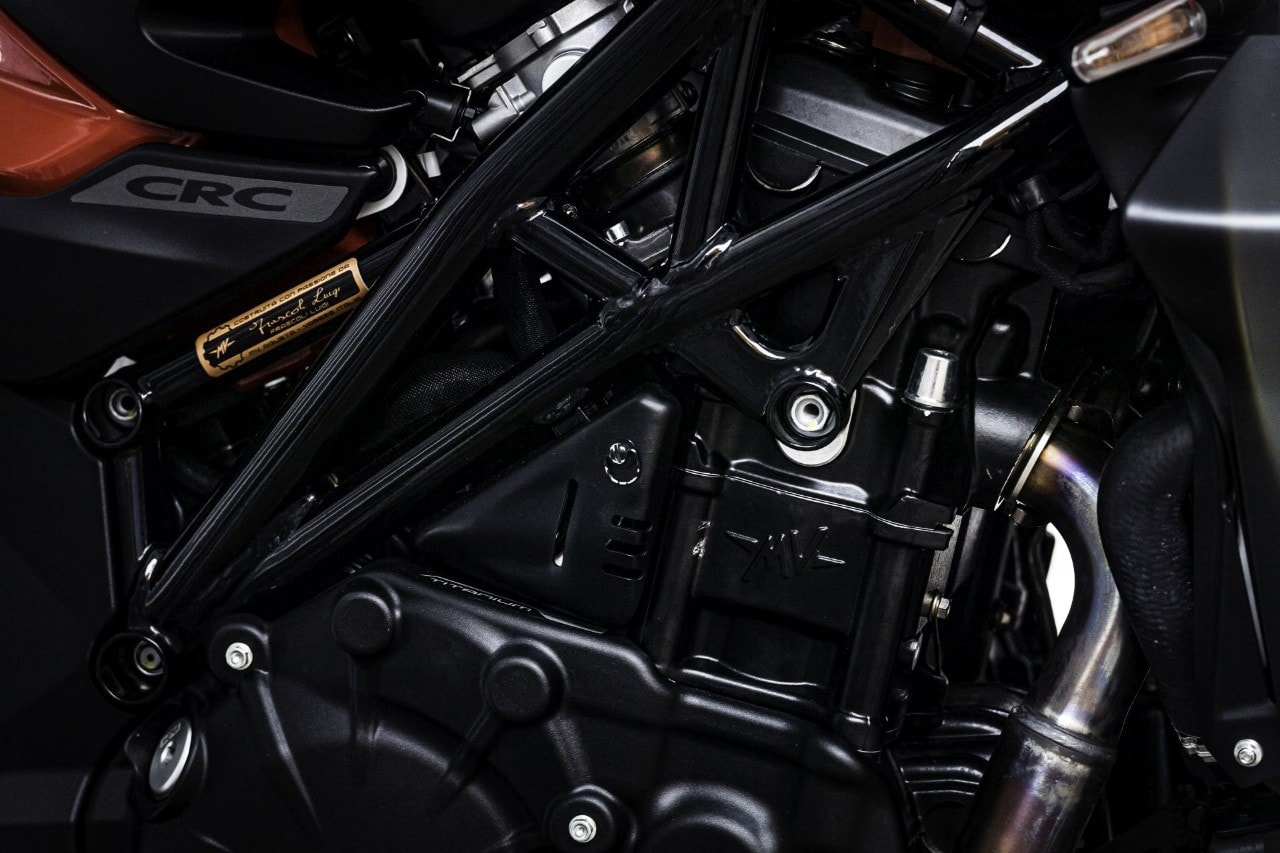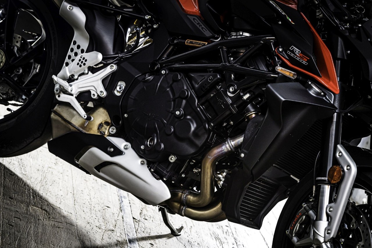 Lasciando da parte le serie limitate che MV non lesina mai, la Brutale 1000 RS arriva sul mercato per affiancare la top di gamma delle hypernaked varesine, la 1000 RR dalla quale mutua gran parte delle caratteristiche a livello di motore e di telaio. La RS ha però l’obiettivo di essere più “umana”, dando confidenza con maggiore facilità a chi si siede sulla sua sella, senza naturalmente perdere nulla alla voce prestazioni e resa dinamica globale che hanno fatto della sorella RR una delle hyper più impressionanti in assoluto ma anche una moto a cui non si dà subito del tu.