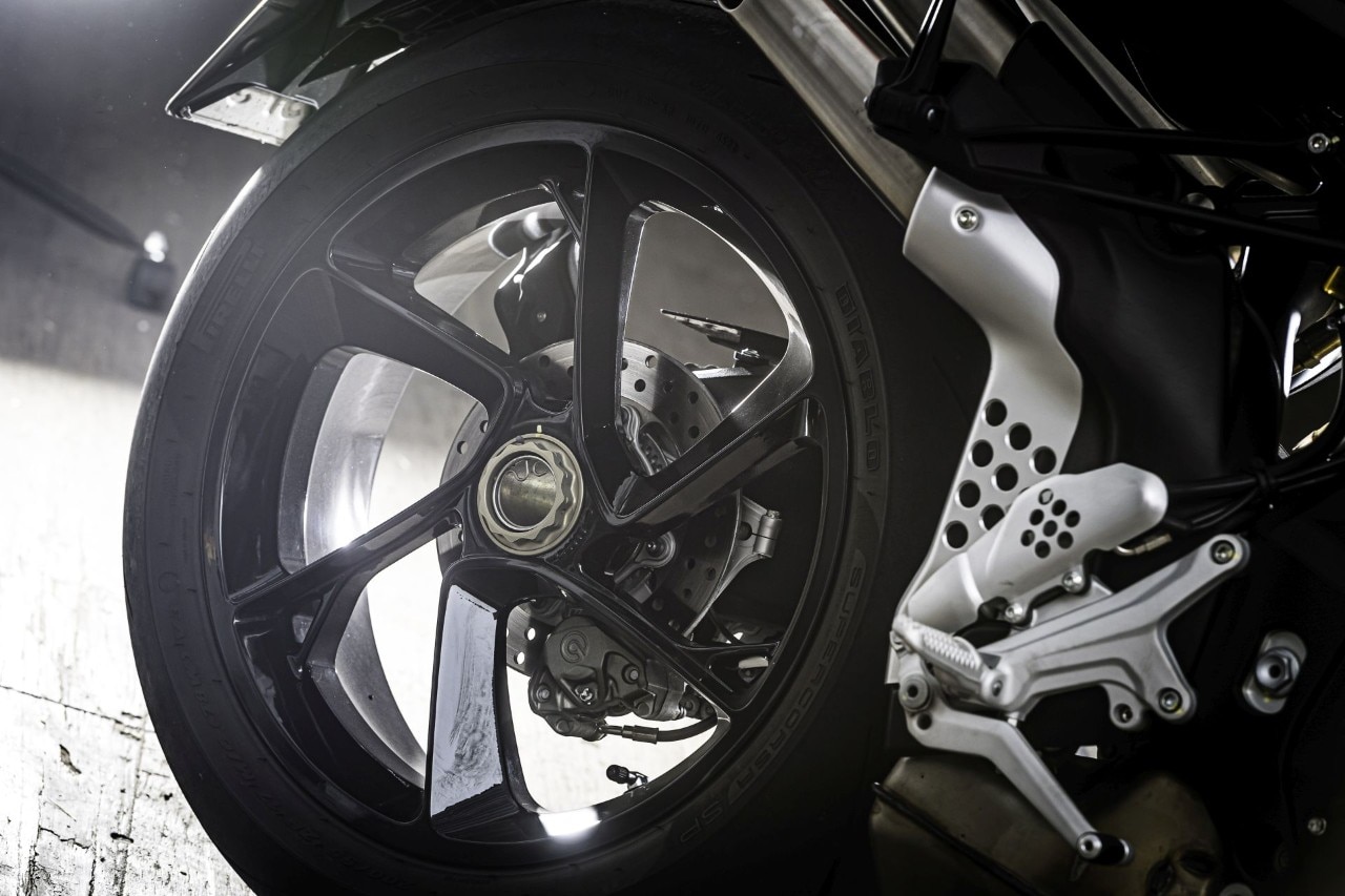 Il motore della RS è identico a quello che equipaggia la RR: ritroviamo le valvole radiali in titanio così come le bielle, e un generale “fine tuning” dell’ultima release con lo scopo di diminuire gli attriti interni. È stata inoltre rivista la gestione del ride by wire per migliorarne la risposta e rendere più precisa la connessione tra richiesta della potenza ed effettiva erogazione della stessa, considerando che ai valori spaventosi di potenza e coppia massima continua a corrispondere una spinta ai regimi intermedi che tende a rimanere un po’ nell’ombra.
