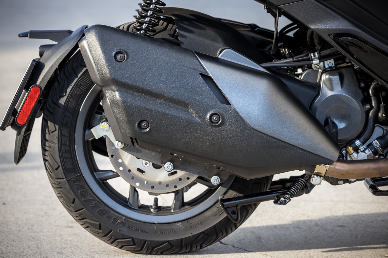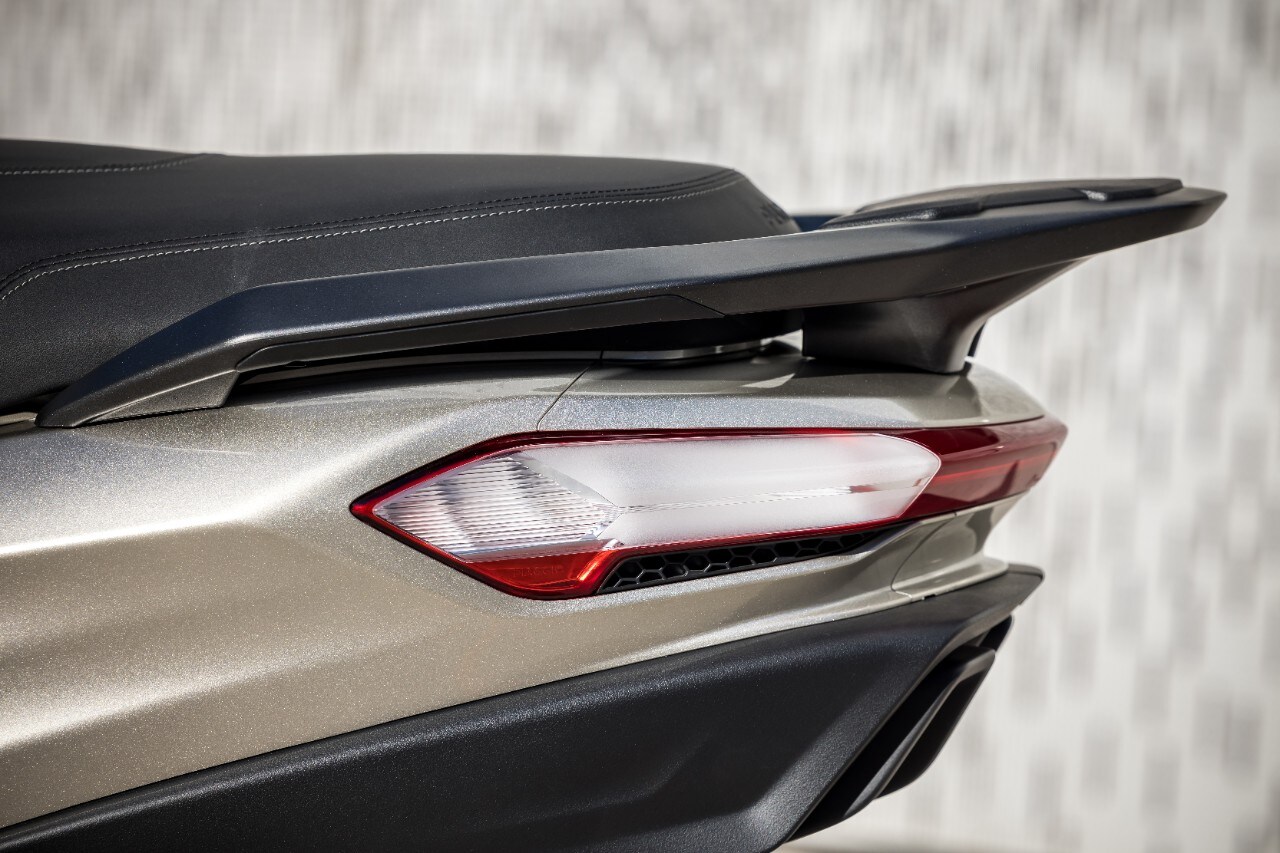 In Piaggio hanno lavorato sullo stile per rendere ancora più sportivo l’MP3. Pur mantenendo il family feeling, il design è stato rivisto a fondo, con un frontale più ampio e protettivo caratterizzato dal nuovo gruppo ottico full LED a sviluppo orizzontale. Cambia l’aerodinamica: lo spostamento del radiatore nella parte inferiore dello scooter ha permesso l’apertura di una presa d’aria anteriore più piccola; spunta uno spoiler studiato per migliorare lo scorrimento dell’aria e la stabilità. Nuovo il parabrezza, più snello ma comunque ben protettivo. Completamente rivisto anche il retrotreno, dove si notano le linee più tese che corrono fino alle luci posteriori, caratterizzate da un unico elemento orizzontale full LED che integra gli indicatori di direzione. Il codone è più snello e filante anche grazie al posizionamento del portatarga sul parafango. I cerchi sono a cinque razze sdoppiate, ma con linee più spigolose.