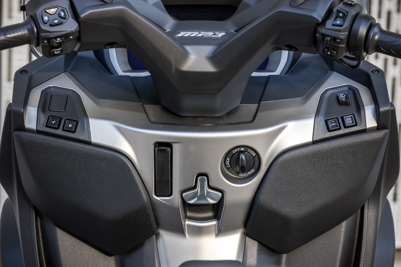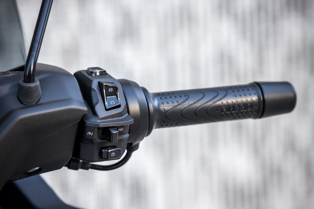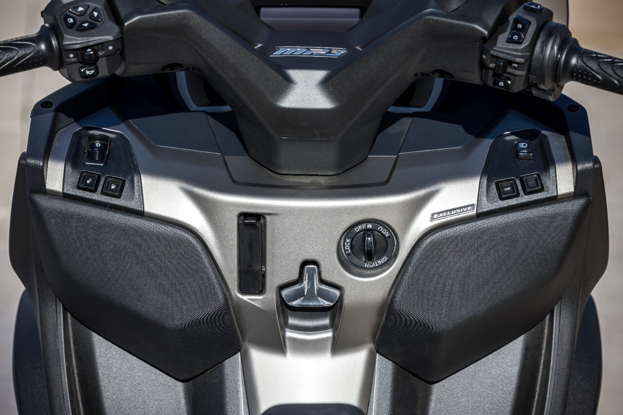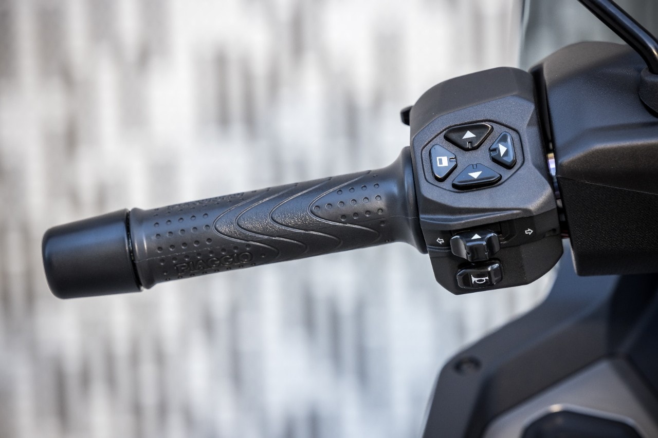 Sul nuovo MP3 infine debutta la smart-key che dialoga con il commutatore a manopola posto al centro del retroscudo. Anche i comandi al manubrio si rinnovano: i pulsanti sono ancora più facili da raggiungere, ad eccezione del cruise control (presente sul 530 HPE Exclusive) posizionato in alto, lontano dal pollice al punto da obbligare a togliere la mano dal manubrio.