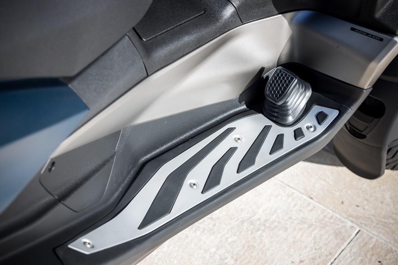 Il motore 400 è silenzioso, non vibra e grazie alla trasmissione ben tarata ha un’accelerazione decisa. Le due modalità Normal e Sport non incidono sulle prestazioni, ma consentono di gestire l’intervento del controllo di trazione. La frenata è ben modulabile tramite le leve e ora ha più potenza; si fatica invece a prendere confidenza con la frenata integrale a pedale. A punto l’ABS, che entra in funzione solo quando serve.