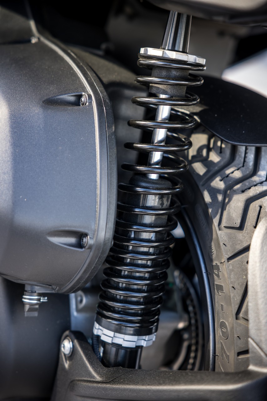 In città si apprezza sempre il blocco elettronico della sospensione, attivabile tramite pulsante al manubrio e con sblocco automatico quando si accelera. Dopo un paio di semafori ci si prende la mano e ci si ferma e si riparte sempre con i piedi a bordo.