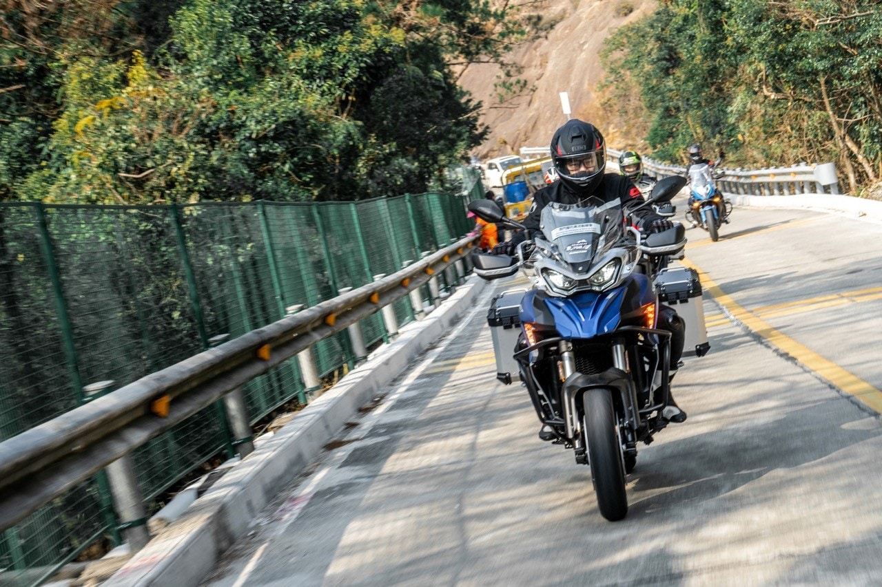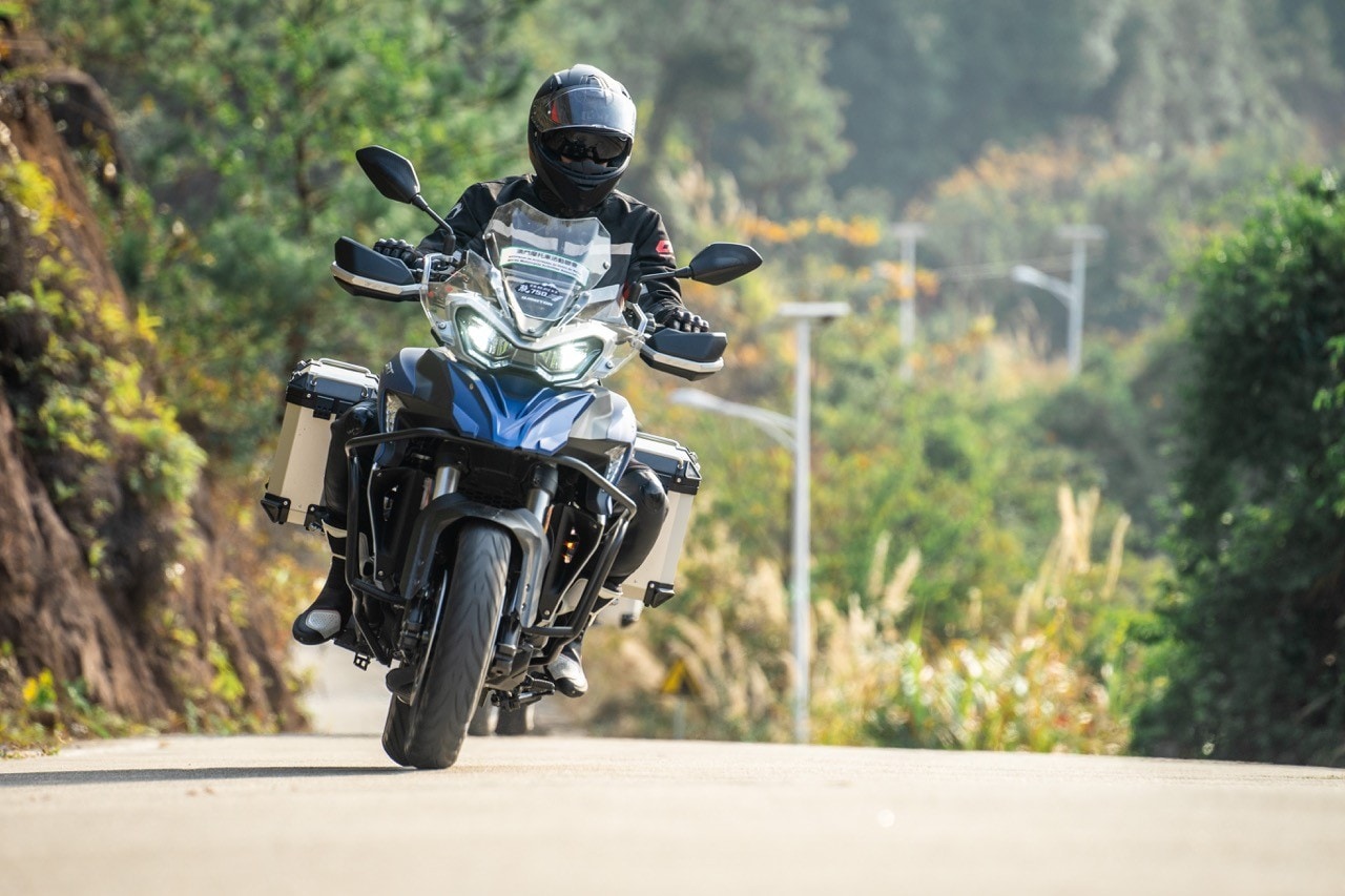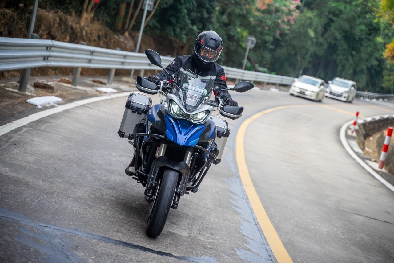 Il comportamento dinamico è ciò che distingue le due QJ SRT 800, e le differenze che si riscontrano sono quelle ci si aspetta tra una moto col 17 e una col 19. La versione con il comportamento più neutro e turistico è la 800 X, ruote a raggi, più rotonda nella discesa in piega e confortevole sulle asperità. Per via della ruota anteriore più grande e pesante bisogna vincere una certa inerzia per curvare; insomma, dove l’asfalto s’arrotola su sé stesso è un po’ pigra, ma nel complesso è ben bilanciata. Certo, il dato del peso non aiuta mai, né in movimento né tantomeno nelle manovre da fermo.