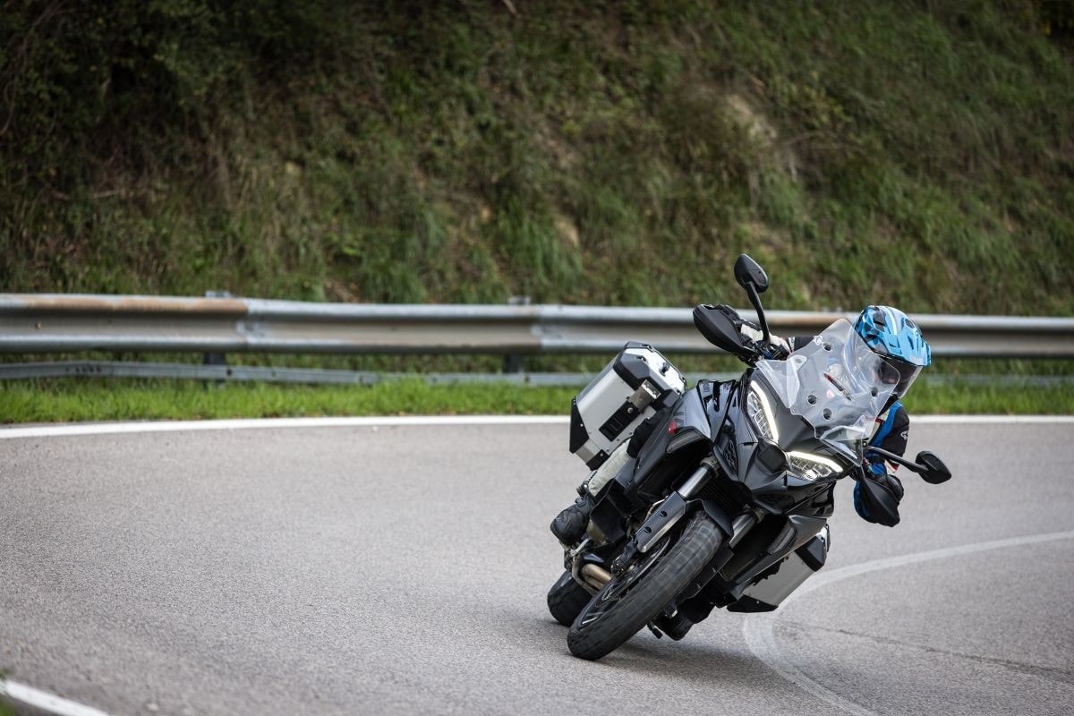 In certi frangenti risulta più svelta di quello che ci si aspetterebbe da una maxi da 229 kg di peso a secco dichiarati: sicuramente un plus se ci si muove sull’asciutto volendosi divertire, anche se questa dinamicità così accentuata richiede di prendere le misure, soprattutto in condizioni di scarsa aderenza quando le informazioni che arrivano dall’anteriore diventano fondamentali. Ci vuole insomma un minimo di apprendistato per capire bene le risposte della Multi ai comandi del pilota.