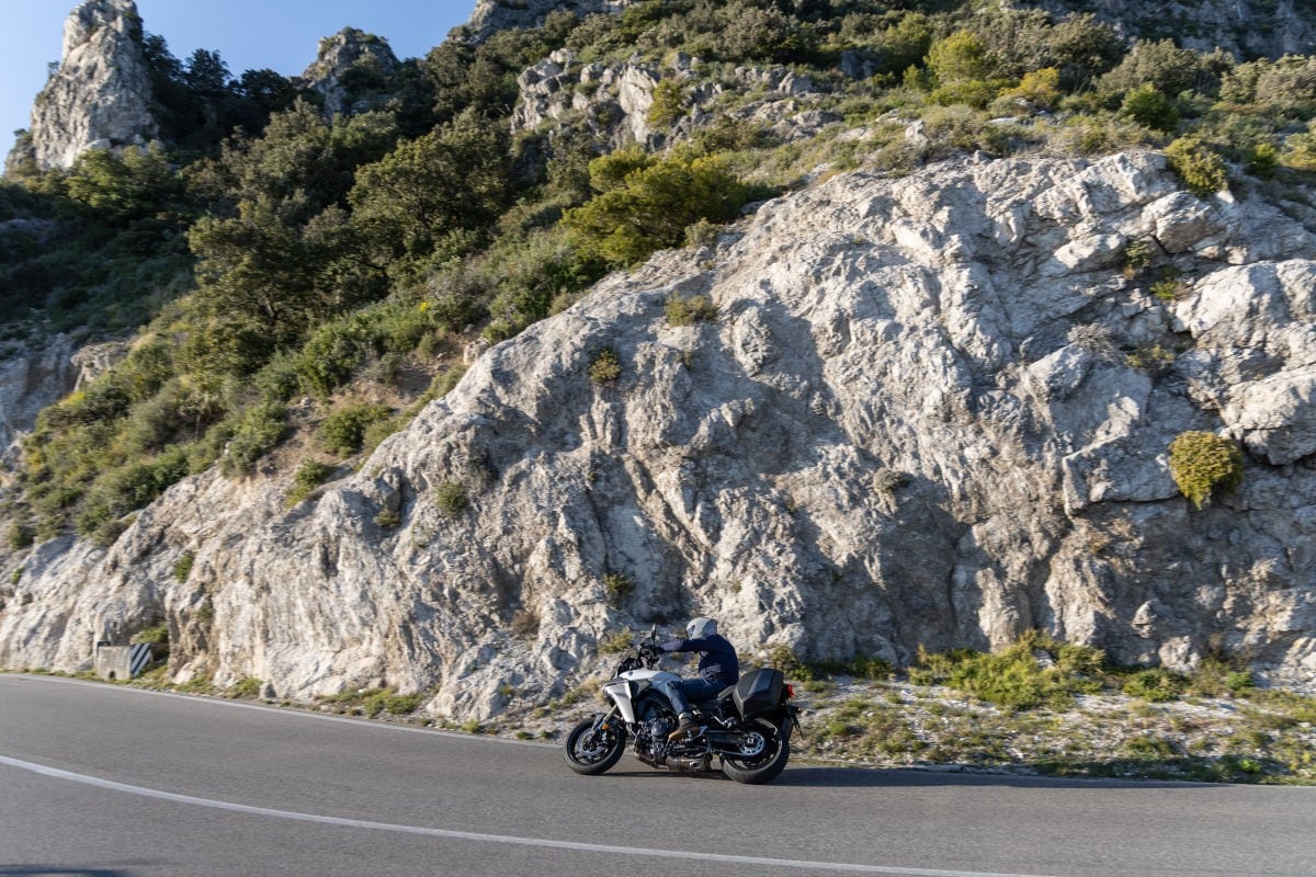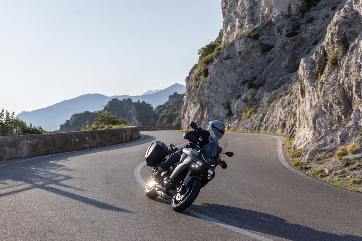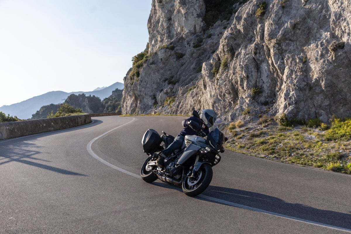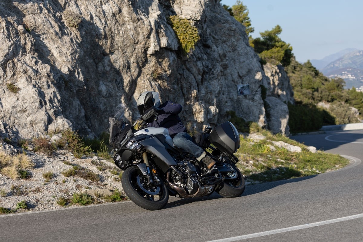 Il motore CP3 mantiene un’erogazione lineare, ma sopra i 5.000 giri la spinta si fa decisa, permettendo accelerazioni brillanti. Le vibrazioni sono minime ai bassi e medi regimi, ma diventano percepibili agli alti. La Tracer 9 GT+ offre un’ottima stabilità anche nei curvoni autostradali, mentre nel misto stretto si dimostra maneggevole grazie alla geometria del telaio Deltabox in alluminio.
