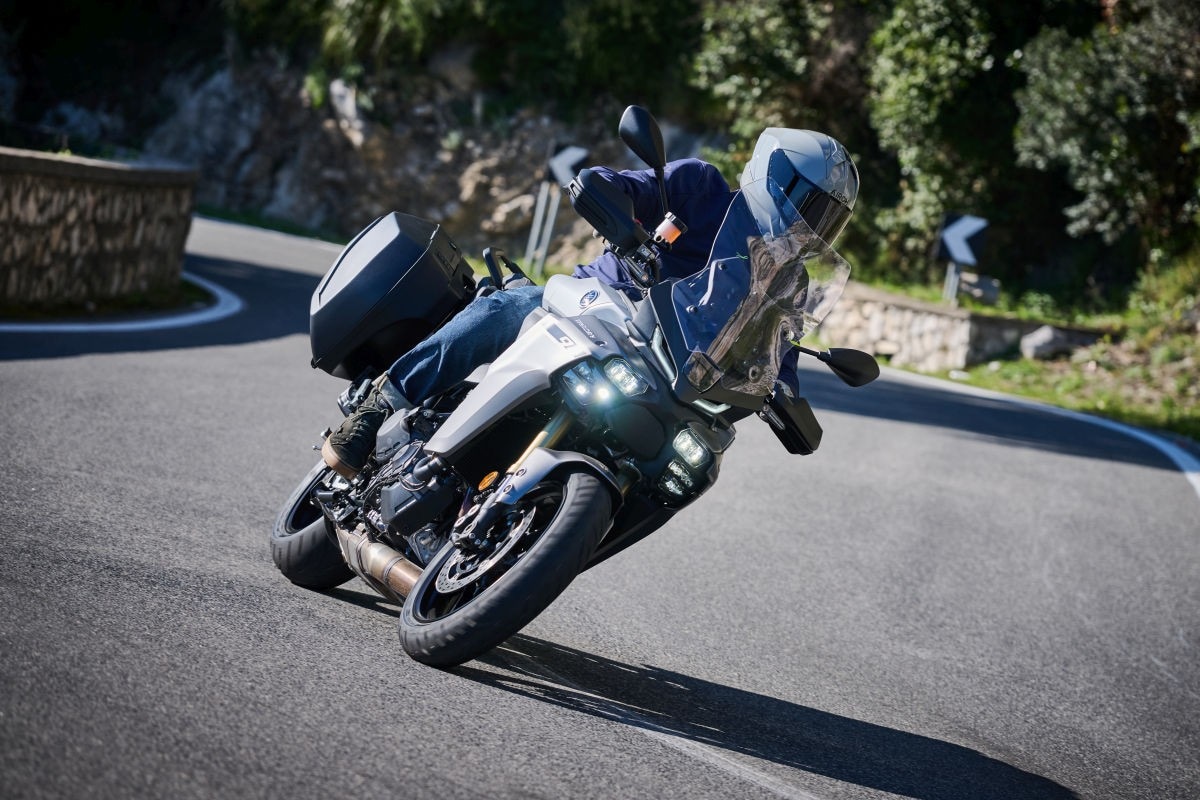Tutte le versioni della Tracer 9 dispongono di un display TFT da 7 pollici, ma la GT+ porta l’equipaggiamento a un altro livello con Smart key e chiusura centralizzata delle borse, navigazione Garmin integrata, cambio elettronico bidirezionale di terza generazione, sospensioni semi-adattive (regolabili tramite app), sensori pressione pneumatici, plexiglass regolabile elettricamente, fari matrix (che ottimizzano l’illuminazione senza disturbare gli altri veicoli), vano portaoggetti con presa USB, a cui si aggiunge una seconda USB.