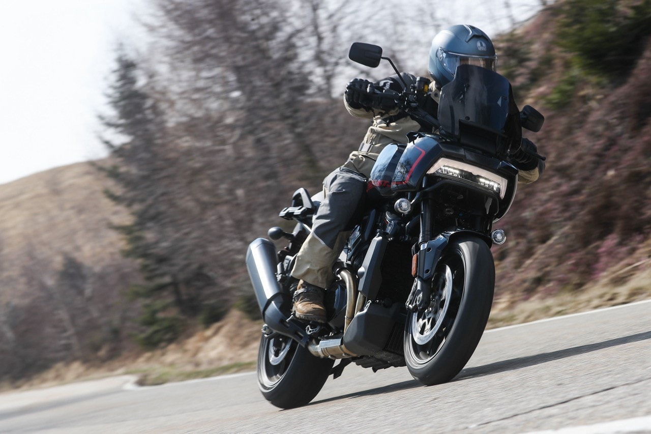 Parti, inizi e a snocciolare marce con il quick shifter Screaming Eagle di serie. Il funzionamento del cambio assistito elettronicamente è buono ma non egregio. Più che altro, non è ottima la costanza di rendimento tra i diversi regimi. In alto è eccellente, a medi giri e in basso a volte la marcia entra fluida e con il giusto contrasto, altre volte impunta un poco; in scalata invece è sempre ok. Il motore, al di là del suono, è davvero ben riuscito e piacevole. In basso è molto pastoso e morbido, lento a salire di giri ma inesorabile. La forza vera la trova ai medi e in alto, dove tira fuori tutti i 150 cavalli e spinge come un dannato. La progressione è tuttavia lineare, non ci sono picchi ed è sempre ben gestibile. In sostanza, si può agevolmente decidere se sfruttarne il carattere pacato dei bassi o quello esuberante degli alti regimi. Nulla di particolare da segnalare riguardo ai riding mode, che lavorano e influiscono sulla curva di coppia esattamente come ci si aspetterebbe. Si rileva però uno spiacevole effetto on-off, che è più che altro un off-on, in quanto si nota più che altro quando si chiude il gas.
